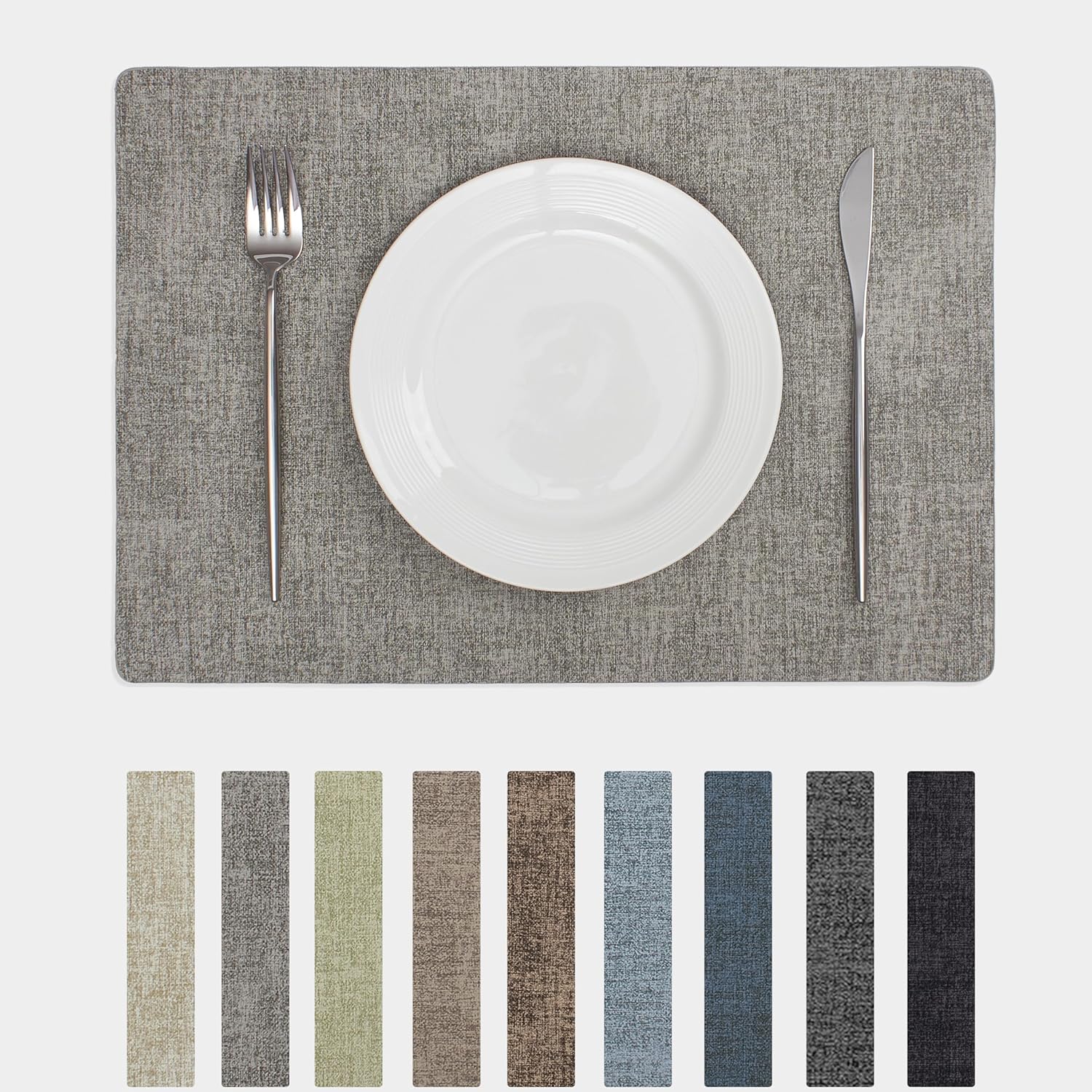 Chrysameld Vinyl Placemats Set of 4 - Faux Leather 100% Waterproof Oil-Proof Wipeable PU Place Mats, Heat Resistant Anti Slip Reversible Table Mats for Indoor & Outdoor Use,(17×12Inch, Light Grey)