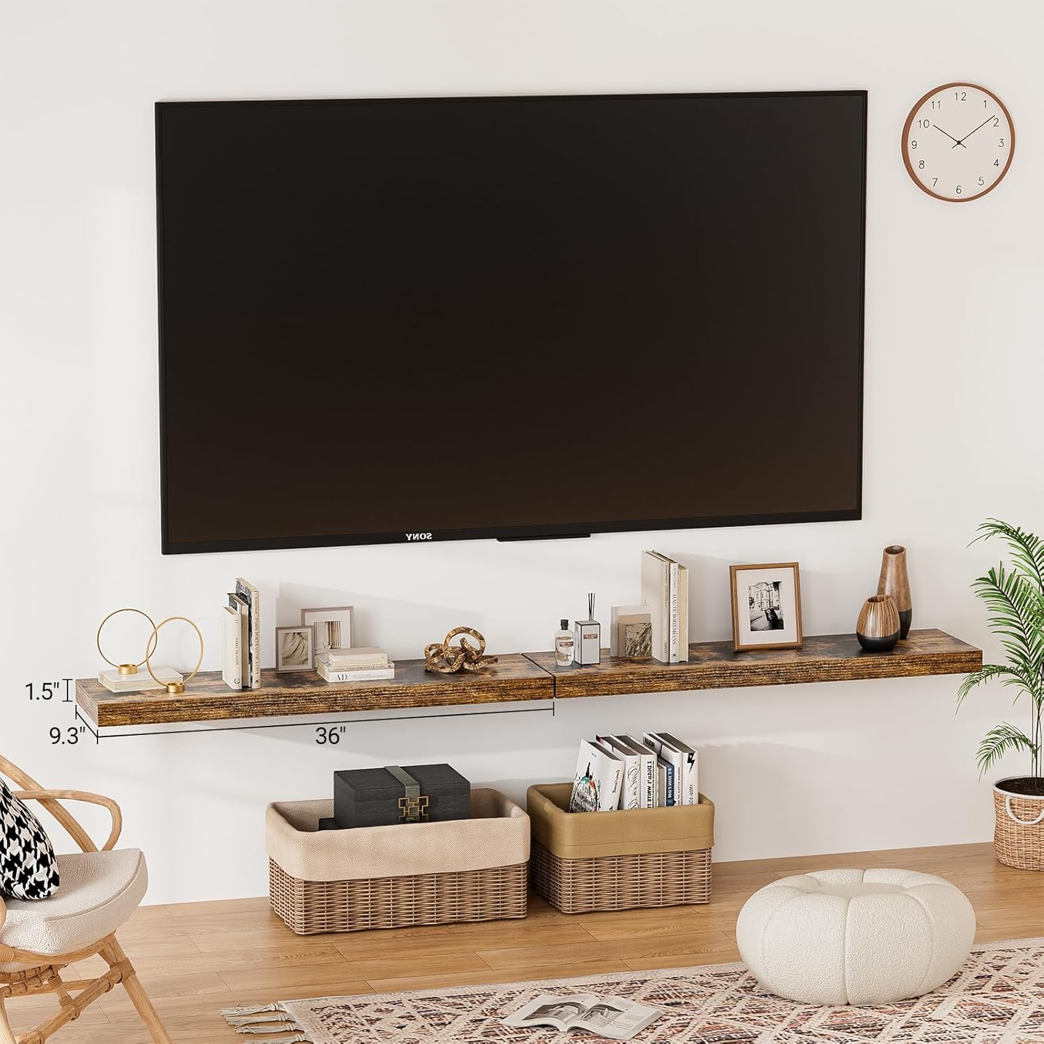 - γModern Rustic LookγOur 36 inch floating shelves for wall are made from durable engineered wood,which blends well with modern and rustic farmhouse wall decor alike.The 36 in brown floating shelves for wall is available in colors & sizes,perfect for storing books,plants,collectibles,etc..
