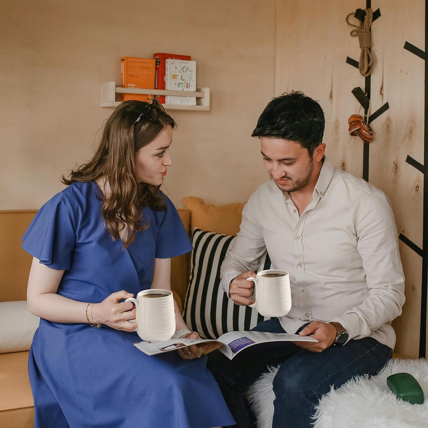 Hasense Coffee Mugs Set of 4, 15 Ounce Porcelain Latte Mug Set with Handle for Morning Coffee Tea and Cocoa, Ceramic Coffee Cups with Unqiue Glaze for Men, Women, Plain