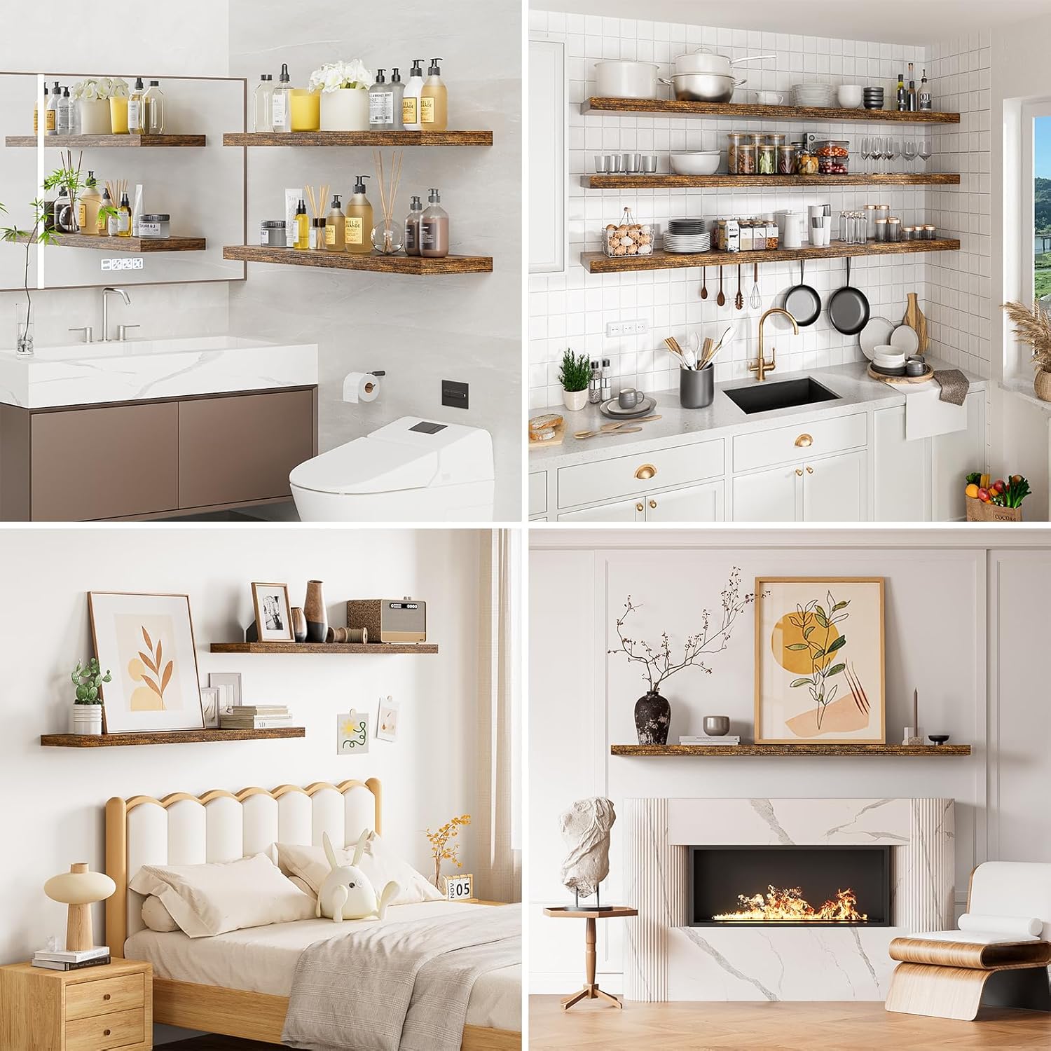 - γMulti-used ApplicabilityγInvisible long floating shelves for wall for living room,bedroom,study,bathroom & kitchen decor.It can be used as wall shelves for bedroom,wall shelves for living room,floating shelves for kitchen,floating shelves bathroom,coffee bar shelves,etc..