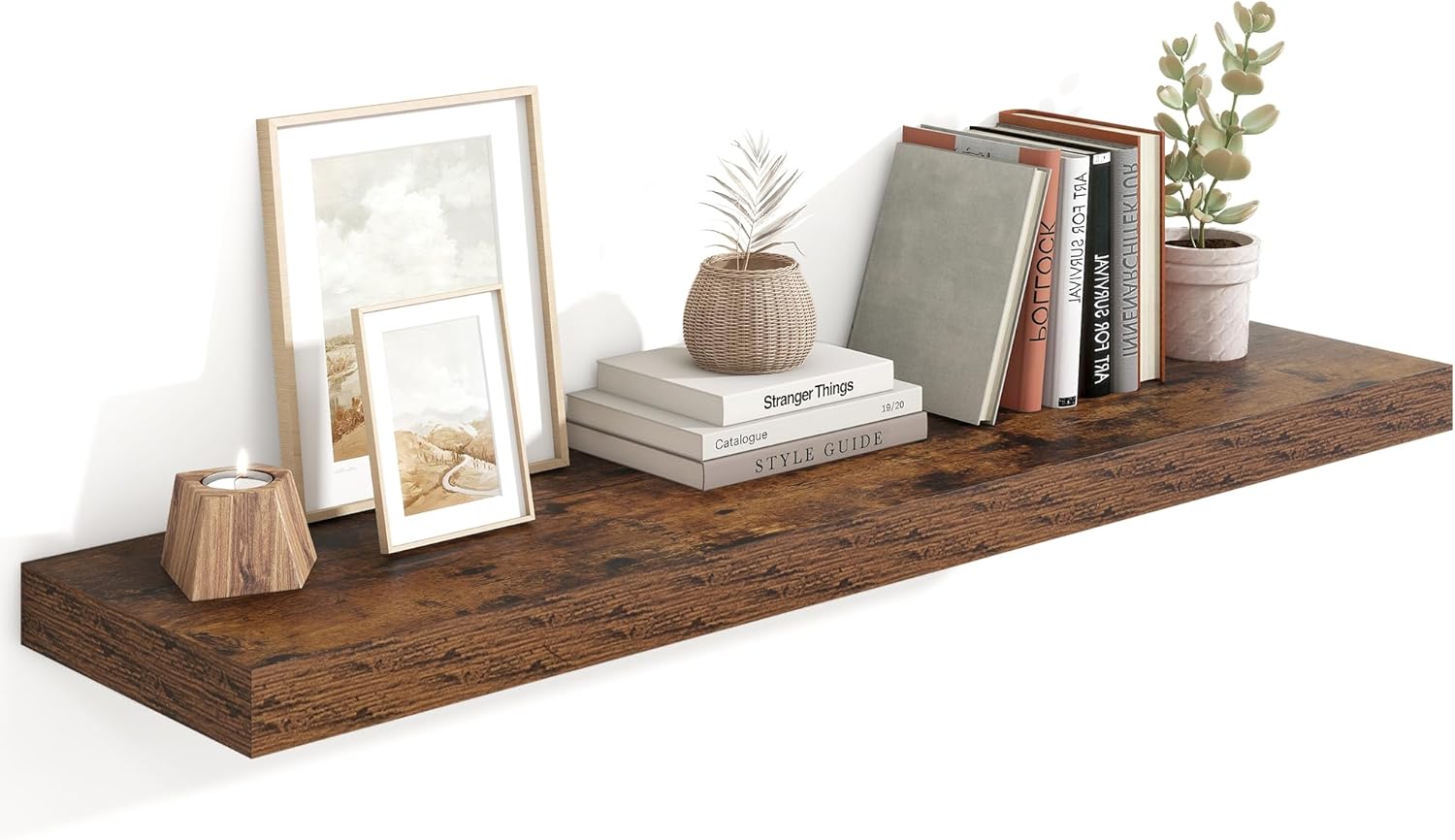 Heimlove 48" Floating Shelves for Wall,10 Deep Rustic Brown Wood Display & Storage Wall Shelves with Heavy Duty Brackets for Bathroom,Bedroom,Kitchen,Living Room,Office