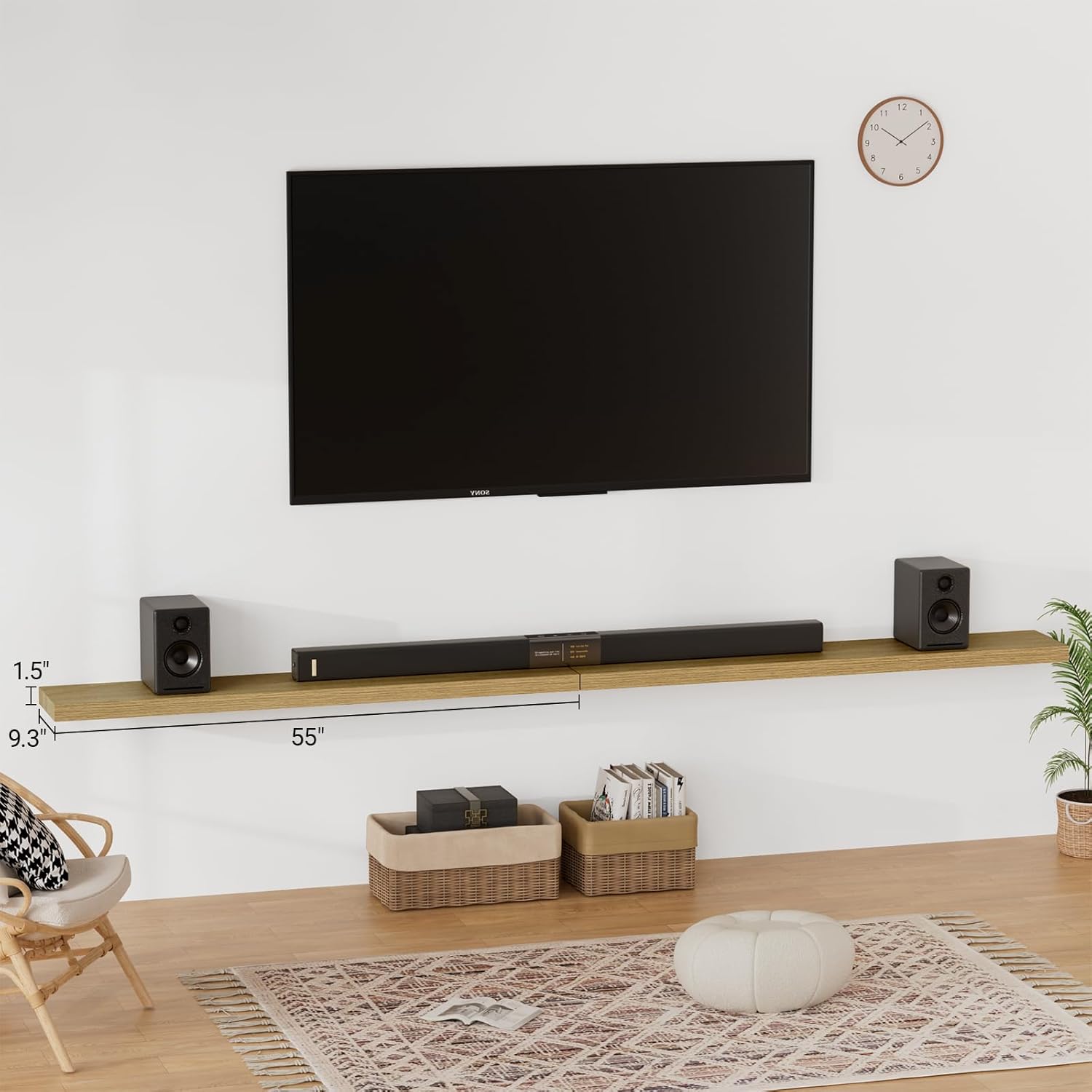 Heimlove 55 Inch Long Floating Shelves for Wall,9.3" Deep Oak Floating Shelves Set of 2,Large Display Shelf & Storage Shelf,Wall Mounted Shelves for Bedroom Living Room Kitchen Office