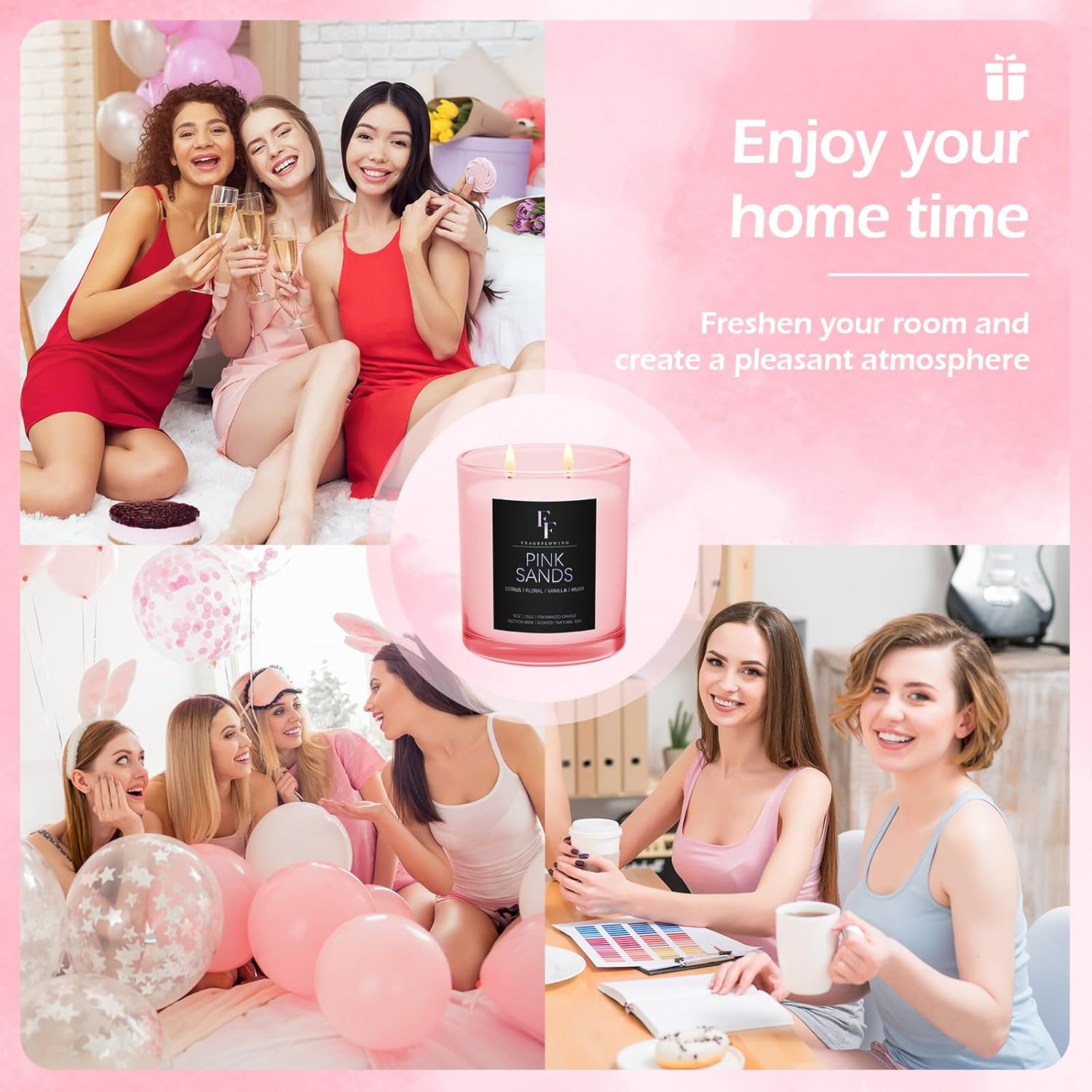 Pink Sand Scented Candle, 2-Wick Luxury Soy Wax Candle, 9 oz Aromatherapy Candle Home Fragrance Candles Gift