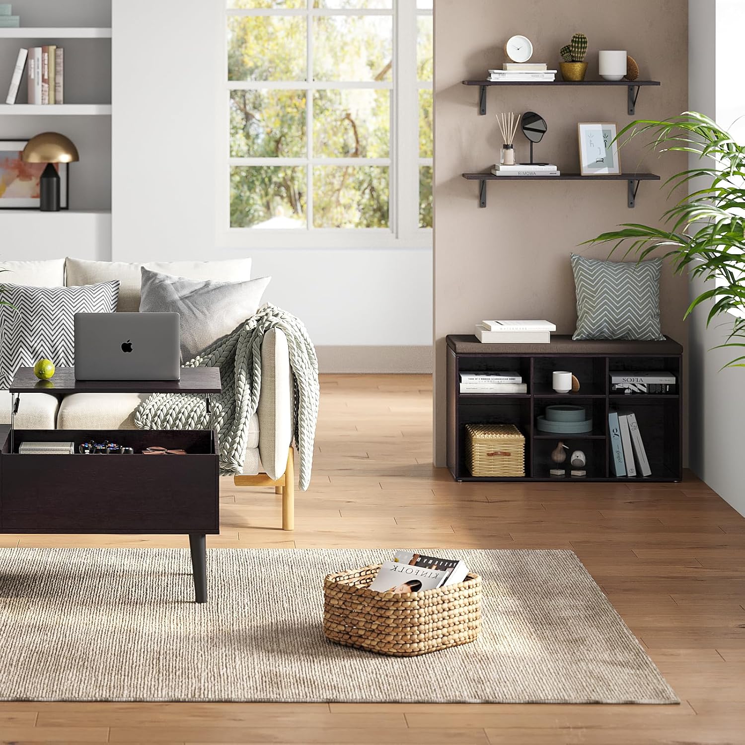 - ใWide ApplicationใThe shelves for wall storage is gospel of small family to enjoy the tranquility of home. The large floating shelves allow you to store books, games, decorations, plants, towels, photos, etc. Creating extra storage in living room, bathroom, bedroom, closet, balcony, study, kitchen, laundry, bar area, pantry and office, etc