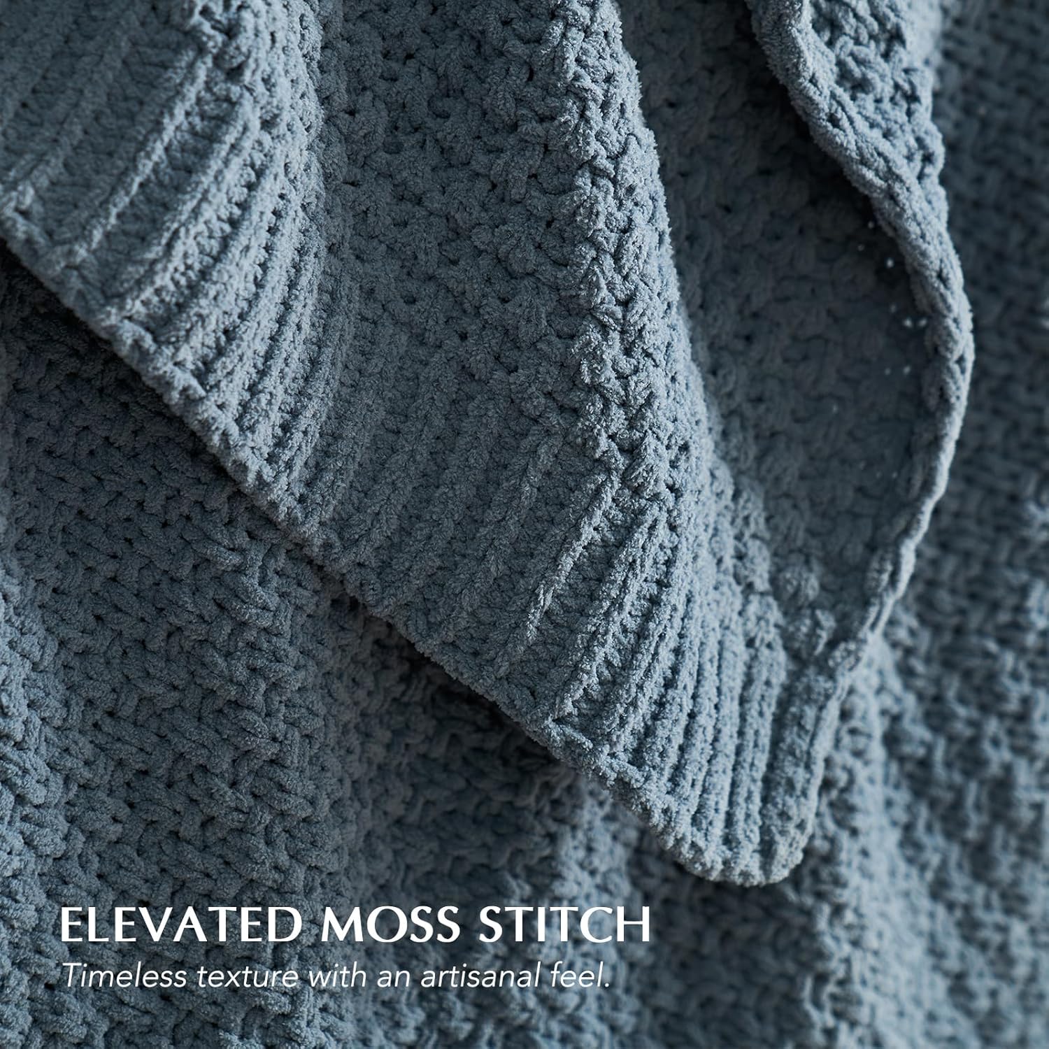 Chunky Chenille Knit Throw Blanket for Couch, Soft Luxurious Moss Stitch Blankets for Bed, Cozy Decorative Farmhouse Knitted Throws for Sofa, Stormy Blue, 50" x 60"
