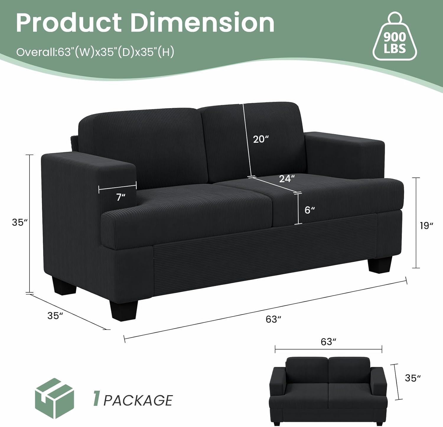 - 【Spacious Seat】At 24" deep, sofa for living room is so spacious, suitable for various figures, perfect for your leisure time