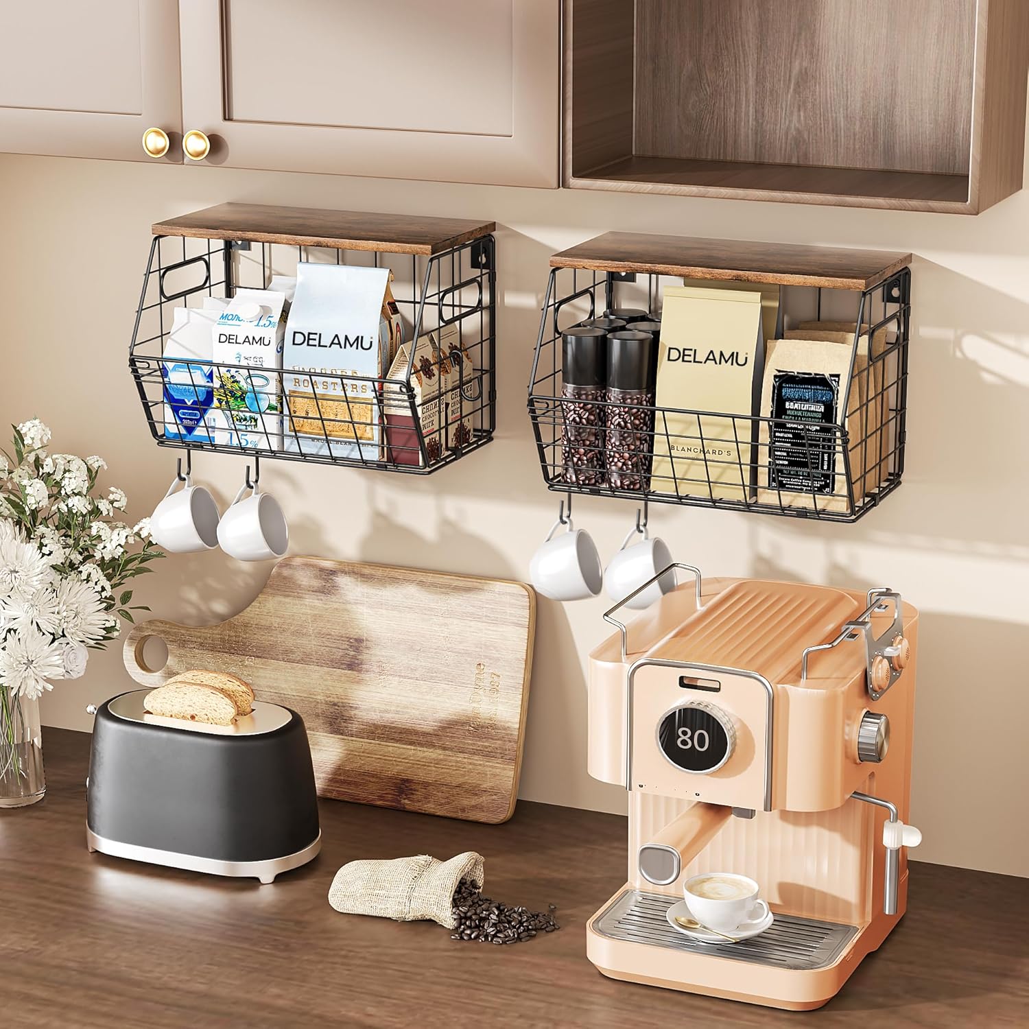 - 【Stack or Hang—Your Choice!】Use as tiered countertop organizers or wall-mounted baskets to free up workspace.The lid's flat surface stores foil,cookbooks,or coffee pods—doubling your storage efficiency