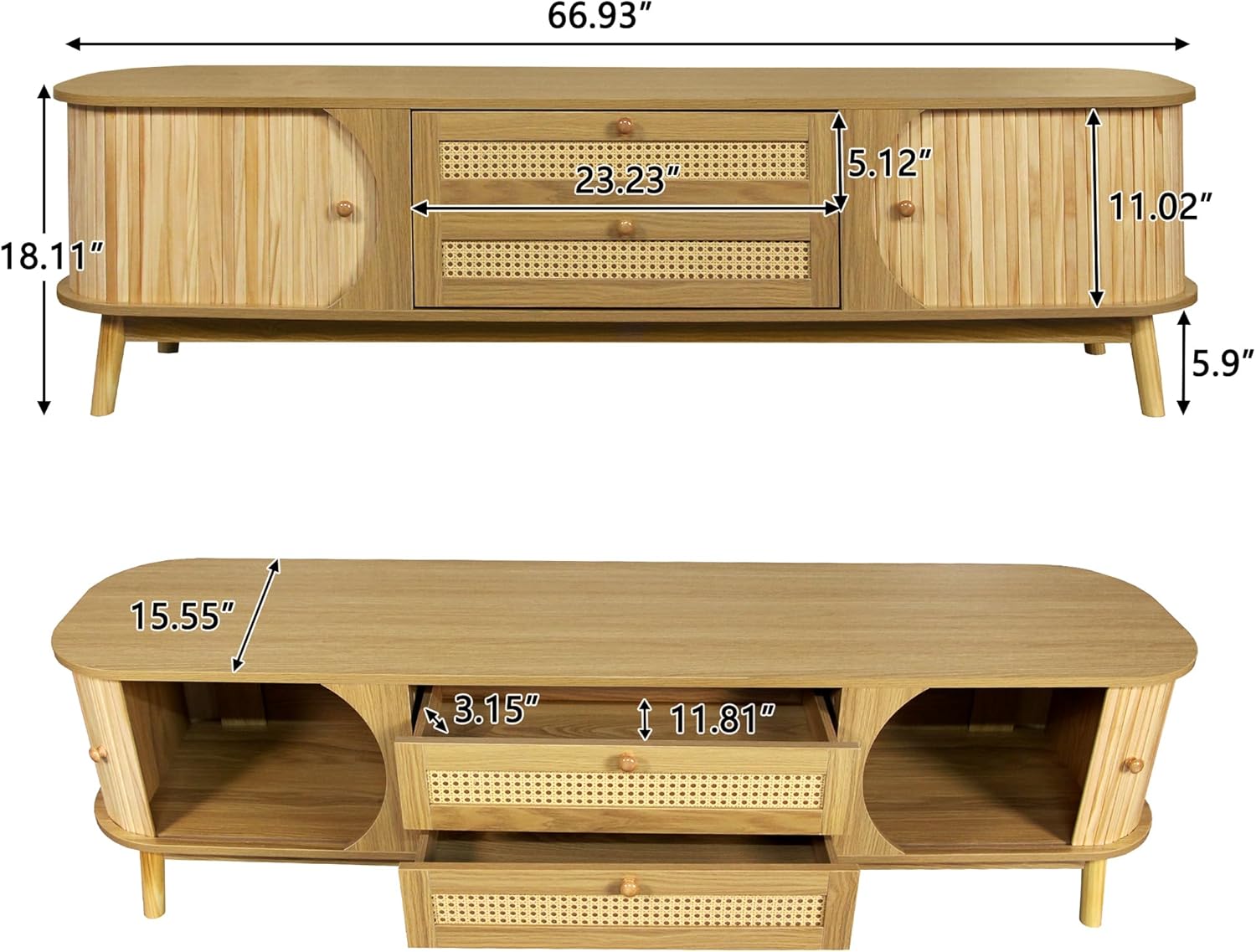 - Sturdy Construction - Crafted from TSCA compliant MDF for lasting beauty and durability, this fluted entertainment unit flaunts a dark walnut texture complementing the natural rattan color, emphasizing the aesthetic look. Supported by well proportioned 4 solid wood legs