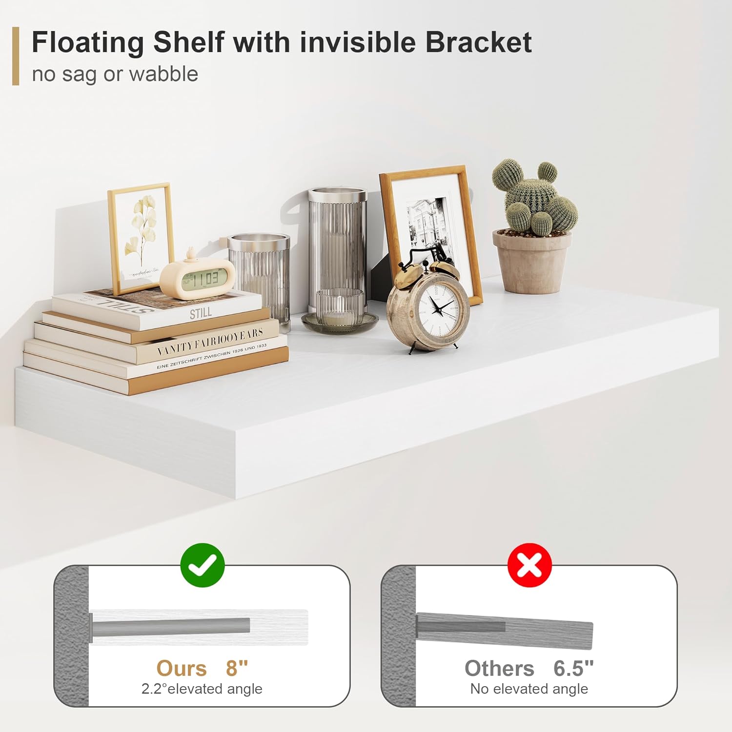- 12 Inches Deep Floating Shelves :This extra deeper and thicker wall shelves are 24"L x 12"D x 2" H,with a capacity of 55Lbs. Our shelves for wall decor create a variety of storage spaces to organize small items on your desktop or counter.and they blend seamlessly with the rest of other decor and provide a stylish way to organize and display items.