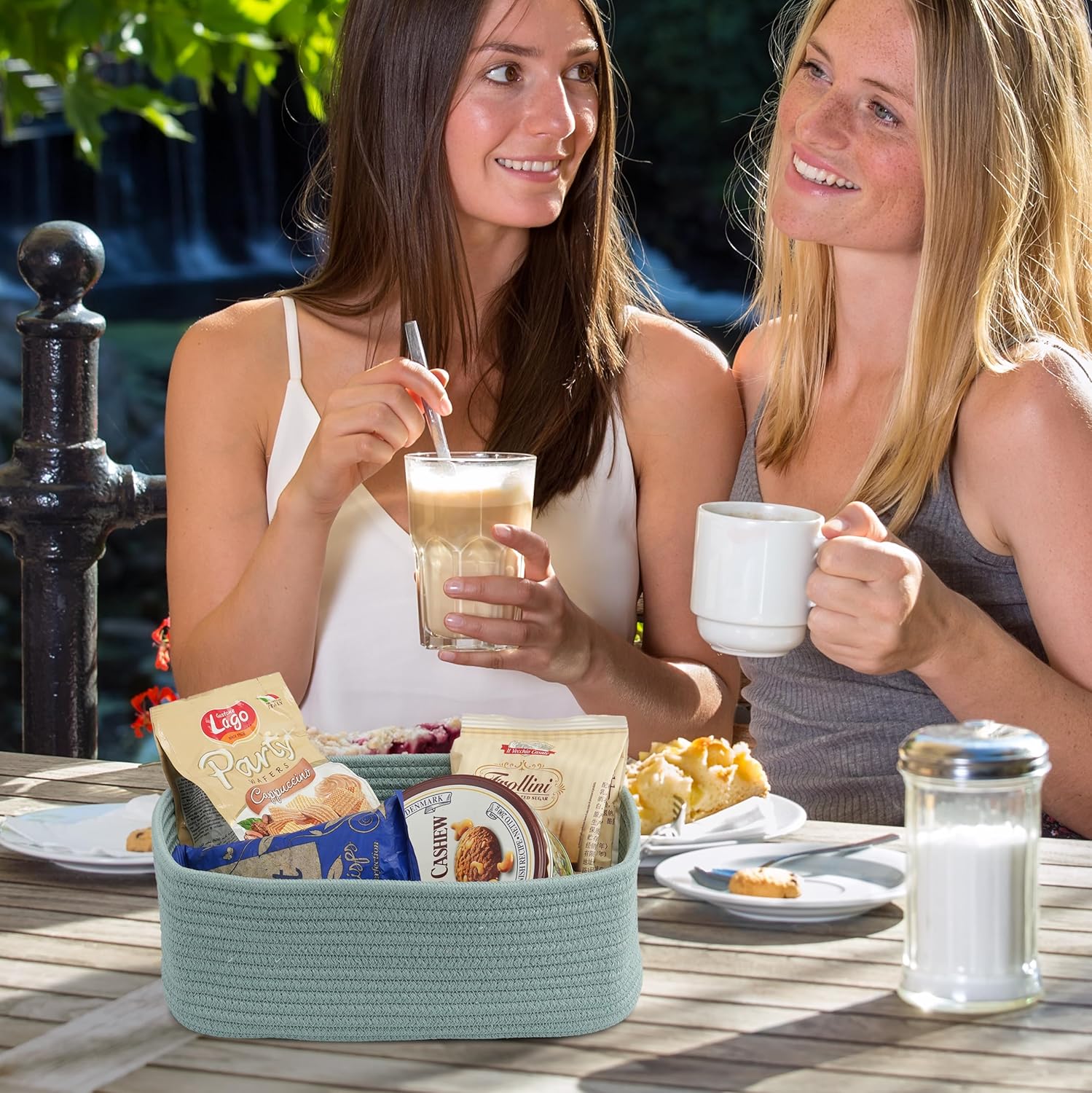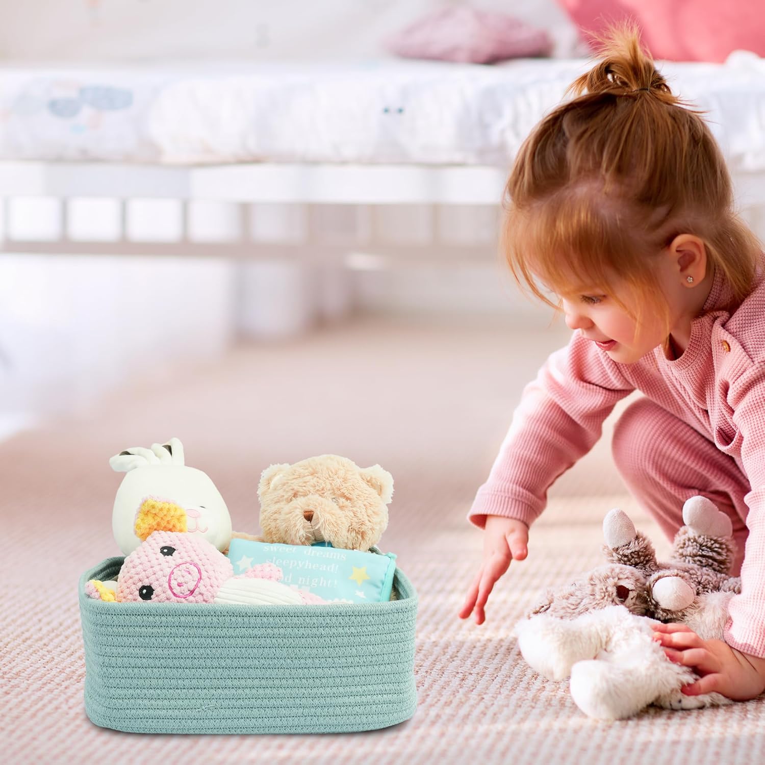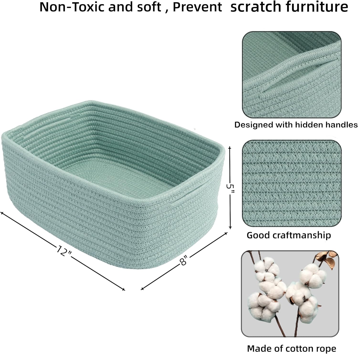 Small Woven Storage Baskets 12“X8”X5“ Decorative Rope Bins for Organizing Shelves, Closets, and Toys, Empty Gift Baskets, Cute Organizer Basket for Home and Office (green, regular)