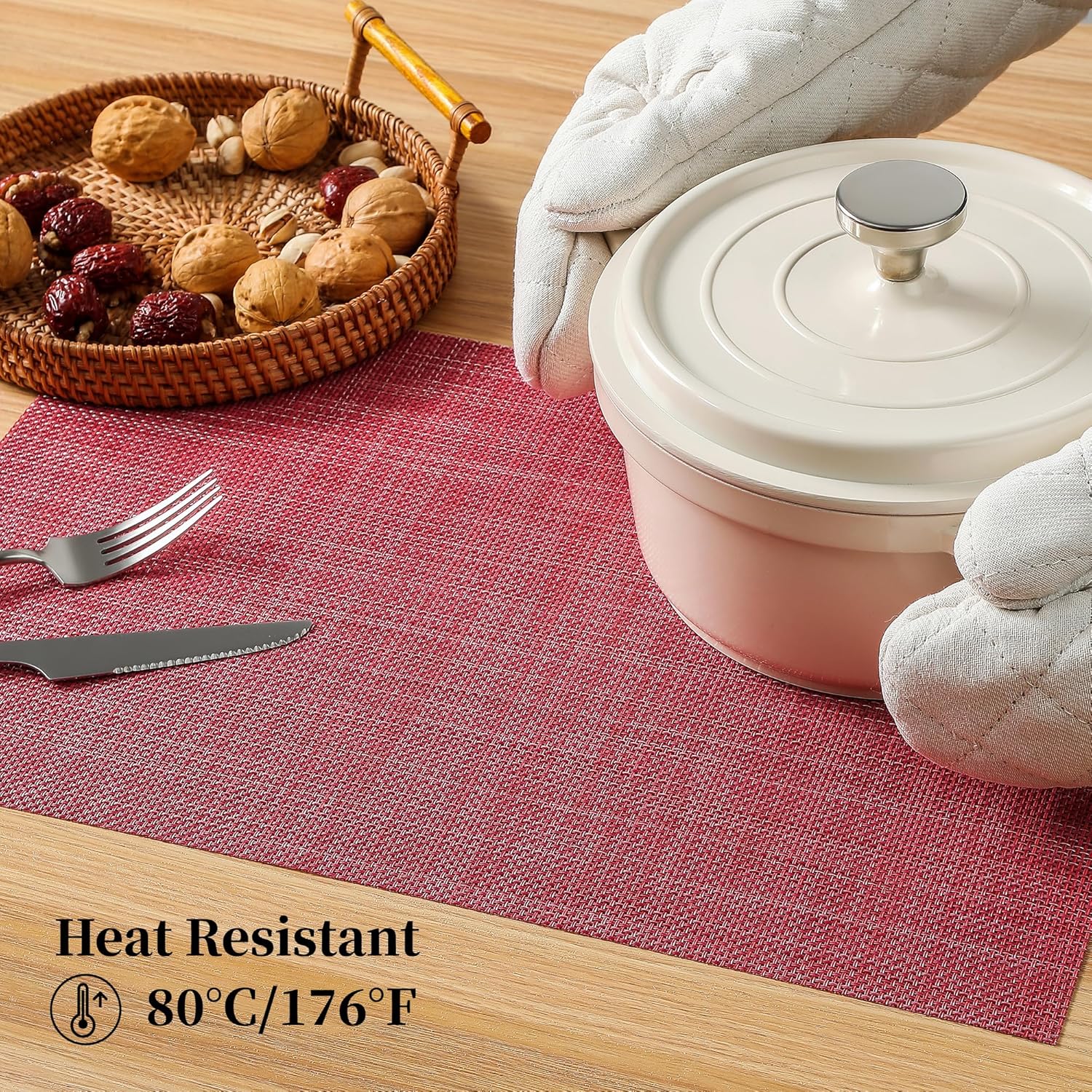 Leetaltree Red Placemats Set of 6 - Heat Resistant Non-Slip Place mats for Dining Table, Washable Durable PVC Vinyl Woven Table Mats(Red, 6)