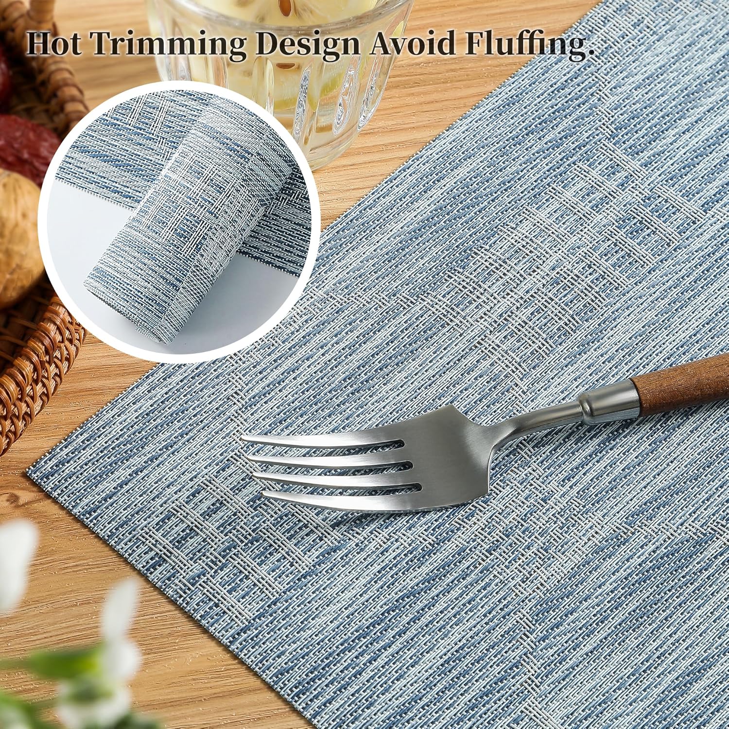 Leetaltree Jacquard Blue Placemats Set of 12 - Heat Resistant Non-Slip Place mats for Dining Table, Washable Durable PVC Vinyl Woven Table Mats(Jacquard Blue, 12)