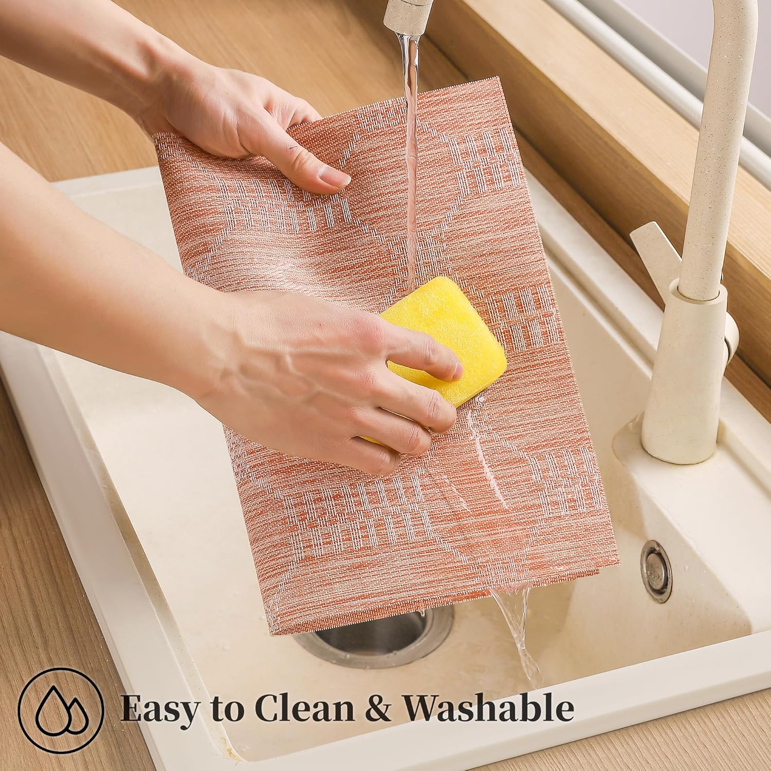 - Easy Maintenance and Storage: Our wipeable placemats are effortless to maintain. Simply use a clean sponge or dishcloth to wipe them clean, or gently wash with a soft brush. They are designed for easy storage and can be folded into any shape to fit your cabinets or drawers