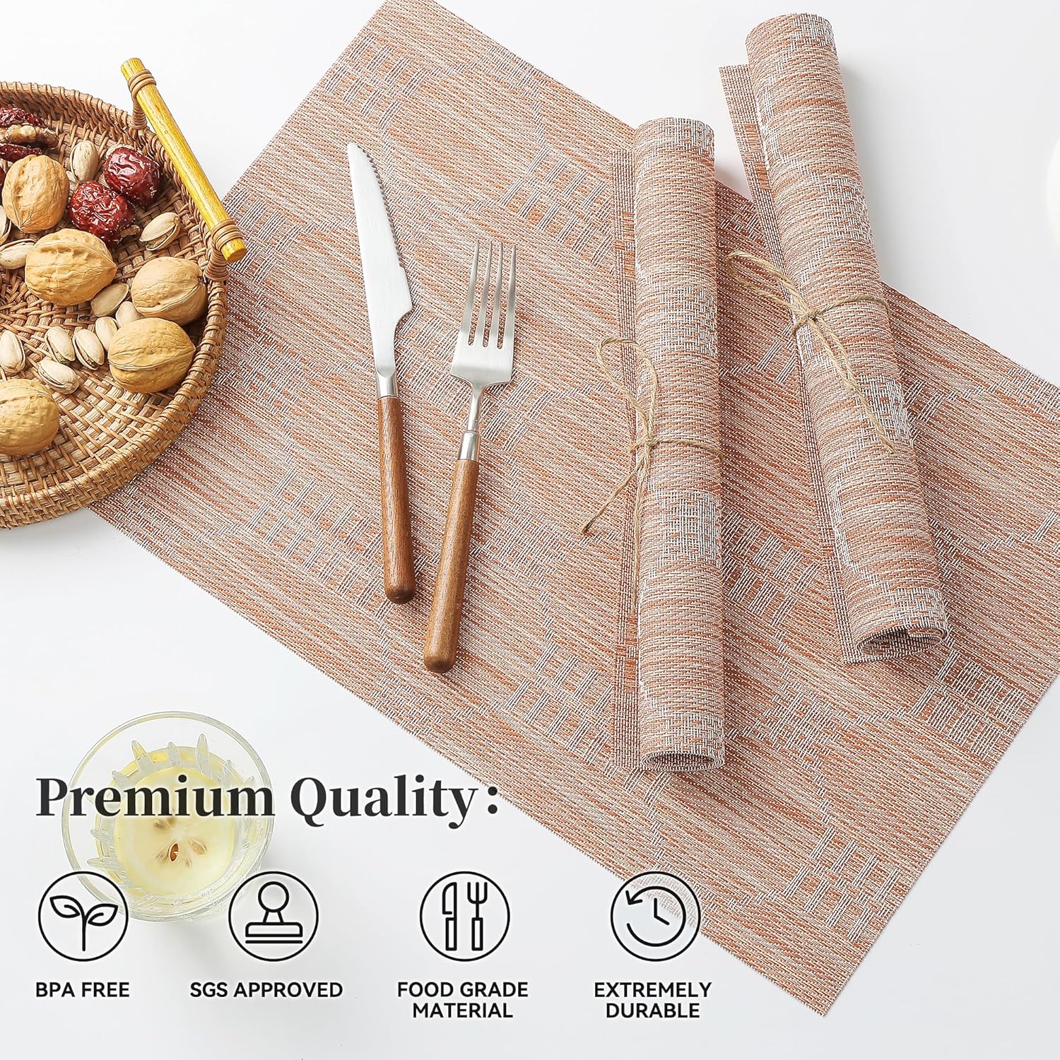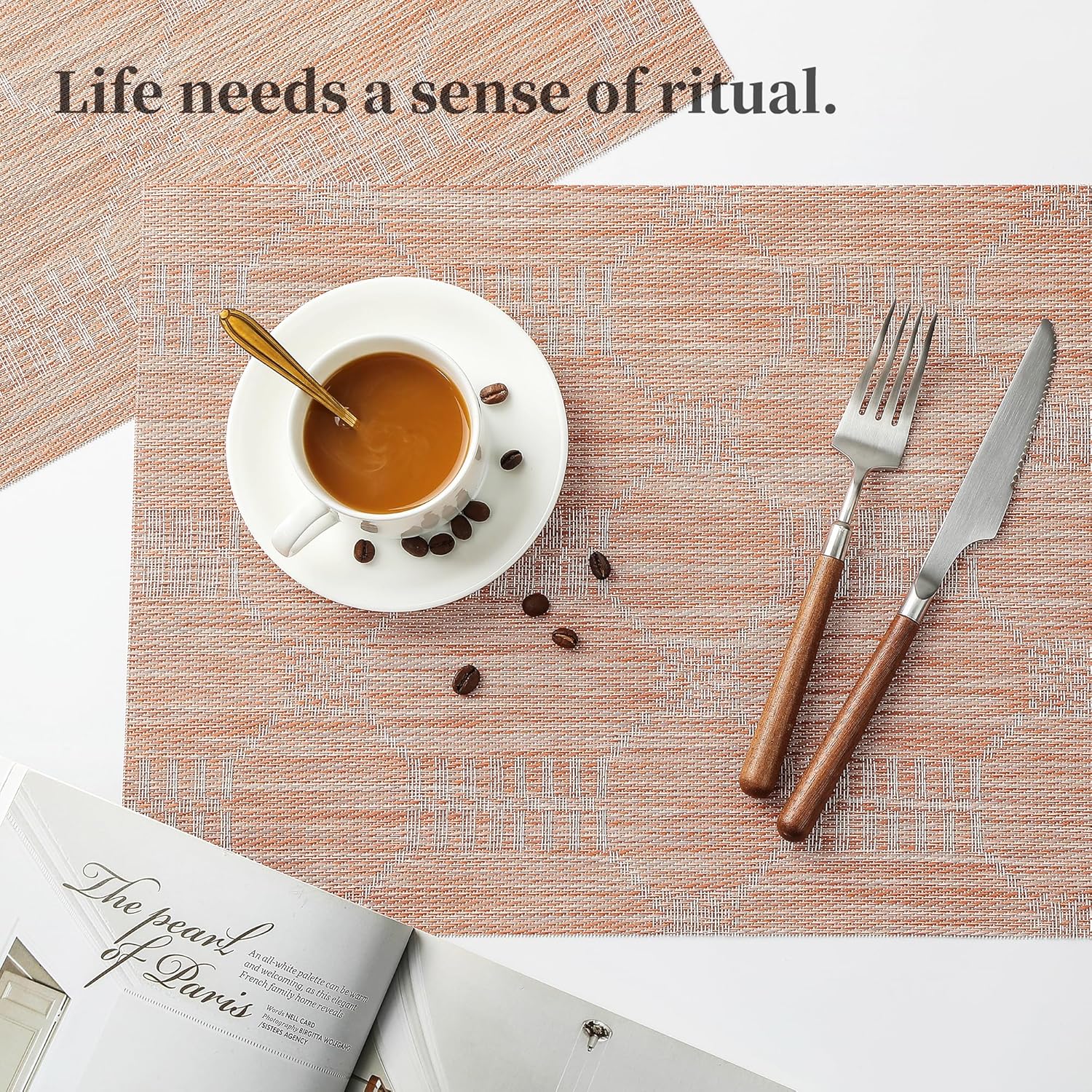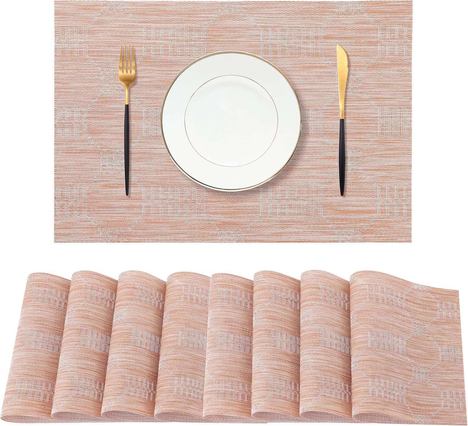Leetaltree Coral Placemats Set of 8 - Heat Resistant Non-Slip Place mats for Dining Table, Washable Durable PVC Vinyl Woven Table Mats(Coral, 8)