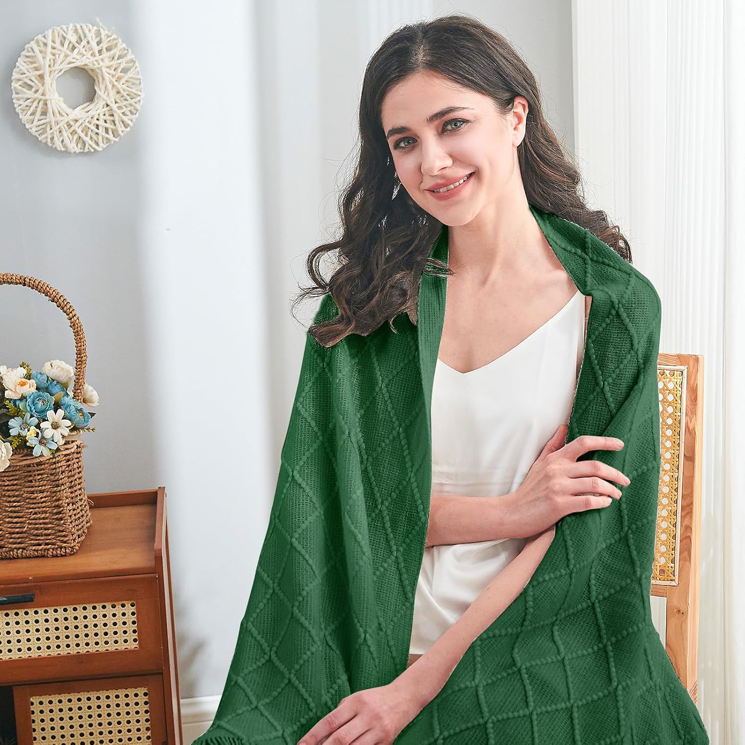 - 【GIFT IDEAS】: Special knitted diamond patterns add a unique accent to your room and people draping it as a shawl. Very suitable for tasteful homeowners. Throw blanket for women, classic but not too tacky as a housewarming gift. Tips: Due to different lighting, display settings, or resolutions, the difference in color happens. We are dying to show the color. To do so, one of the images shows the color difference in different lighting. Hope these instructions would help you to buy a throw.