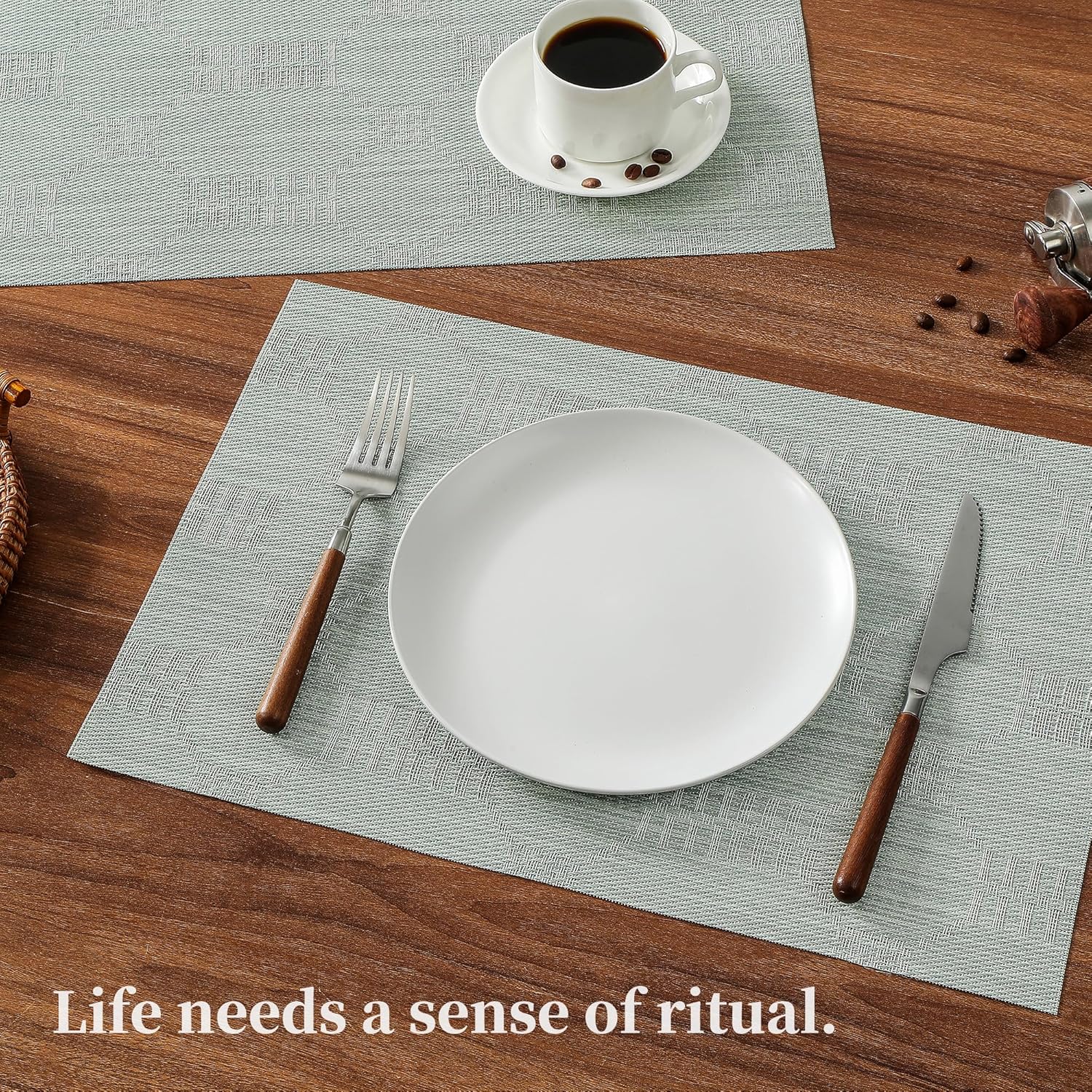Leetaltree Mint Cream Placemats Set of 6 - Heat Resistant Non-Slip Place mats for Dining Table, Washable Durable PVC Vinyl Woven Table Mats(Mint Cream, 6)