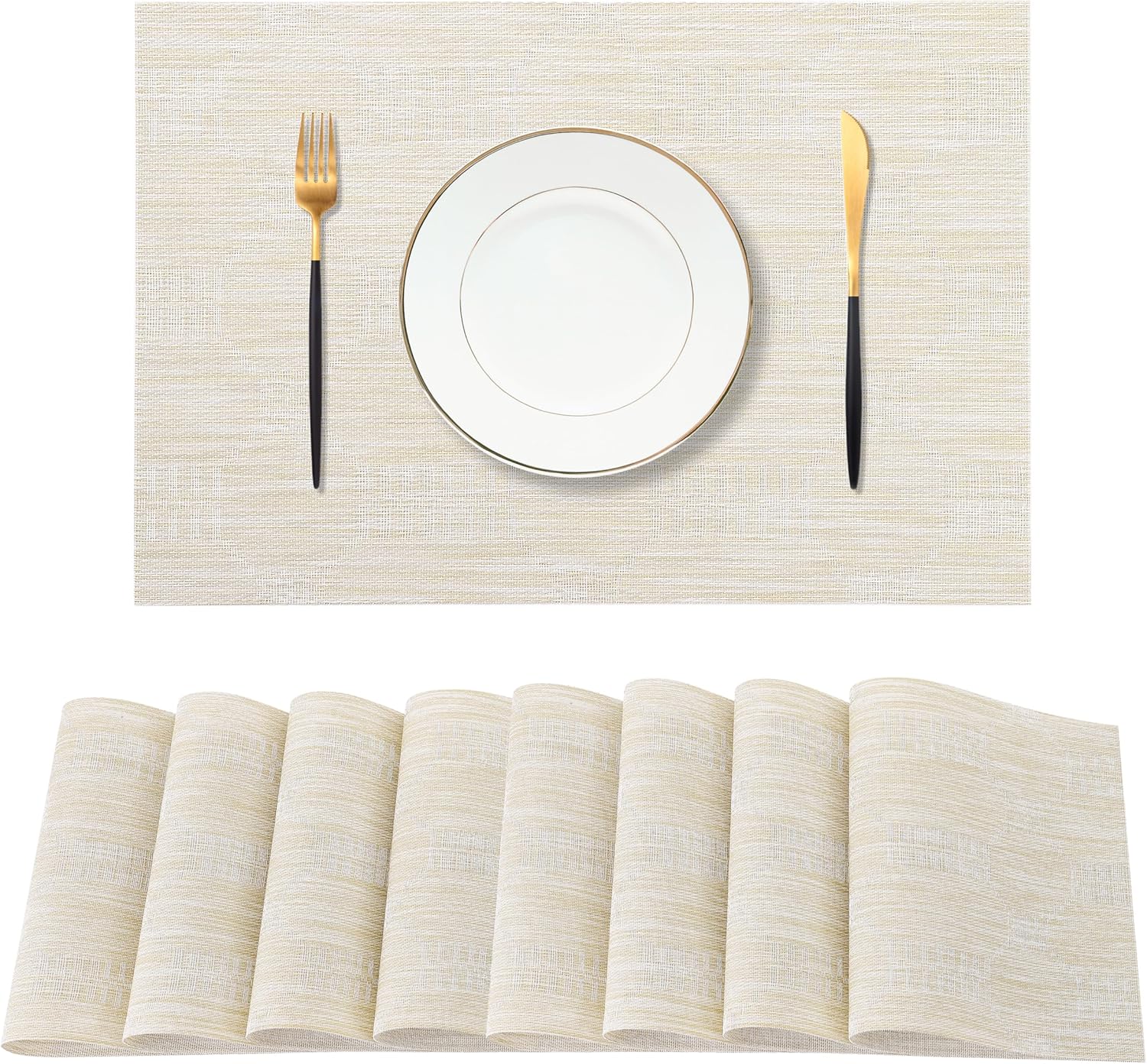 Leetaltree Wheat Placemats Set of 8 - Heat Resistant Non-Slip Place mats for Dining Table, Washable Durable PVC Vinyl Woven Table Mats(Wheat, 8)