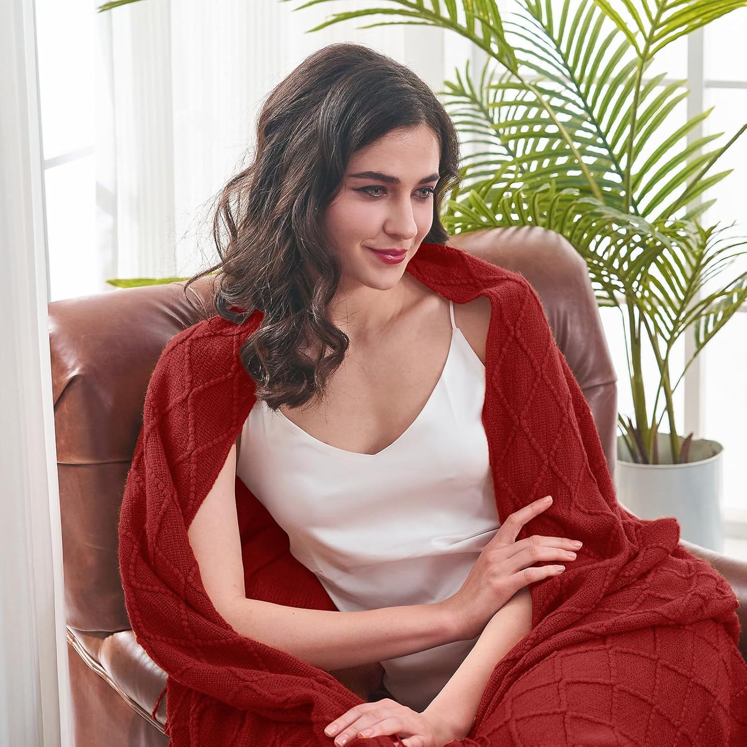 - 【GIFT IDEAS】: Special knitted diamond patterns add a unique accent to your room and people draping it as a shawl. Very suitable for tasteful homeowners. Throw blanket for women, classic but not too tacky as a housewarming gift. Tips: Due to different lighting, display settings, or resolutions, the difference in color happens. We are dying to show the color. To do so, one of the images shows the color difference in different lighting. Hope these instructions would help you to buy a throw.