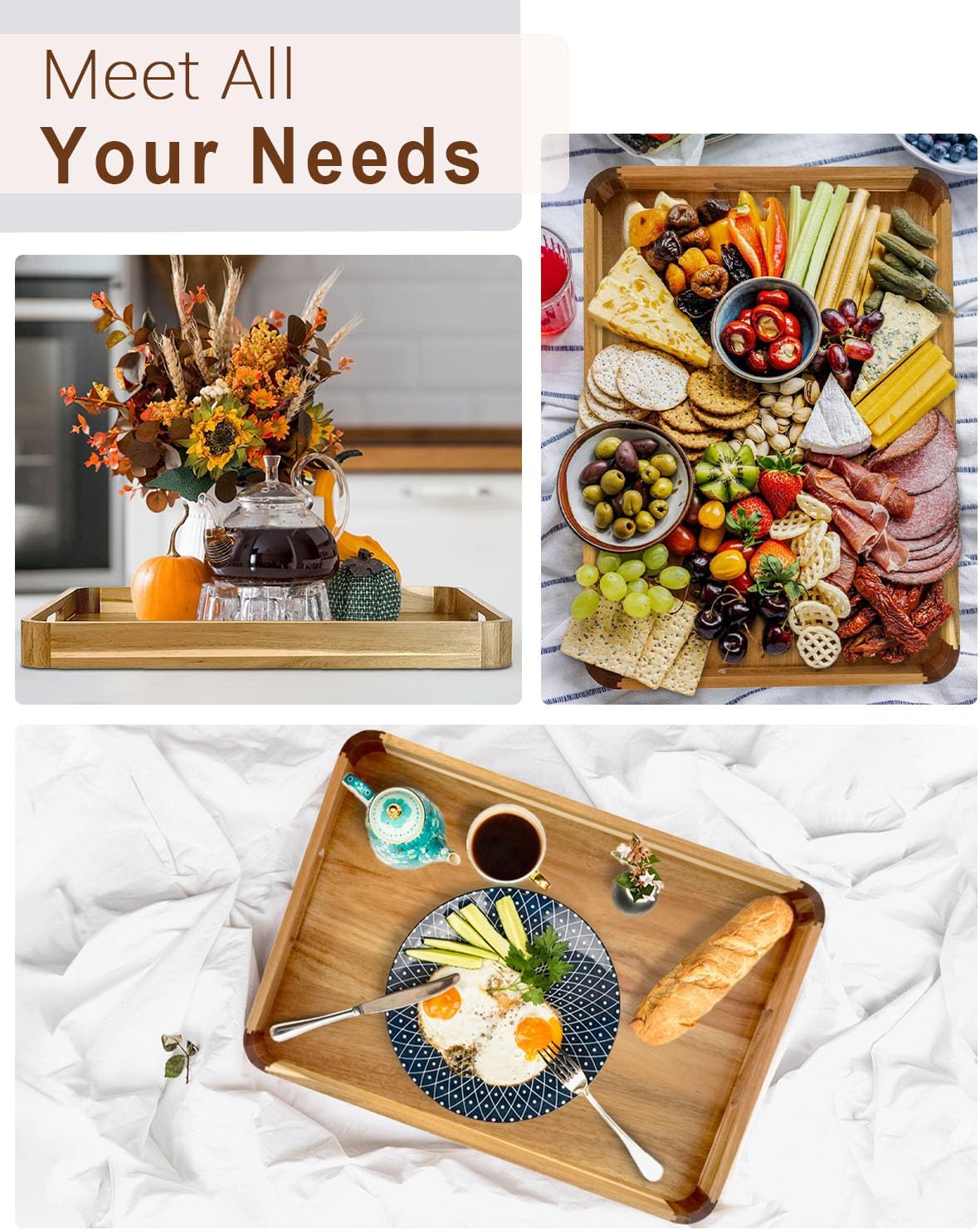 - PREMIUM ACACIA WOOD β Made from high-quality natural wood, this wooden tray is sturdy and durable. The round edges provide extra protection, while the clear paint finish makes it easy to maintain.