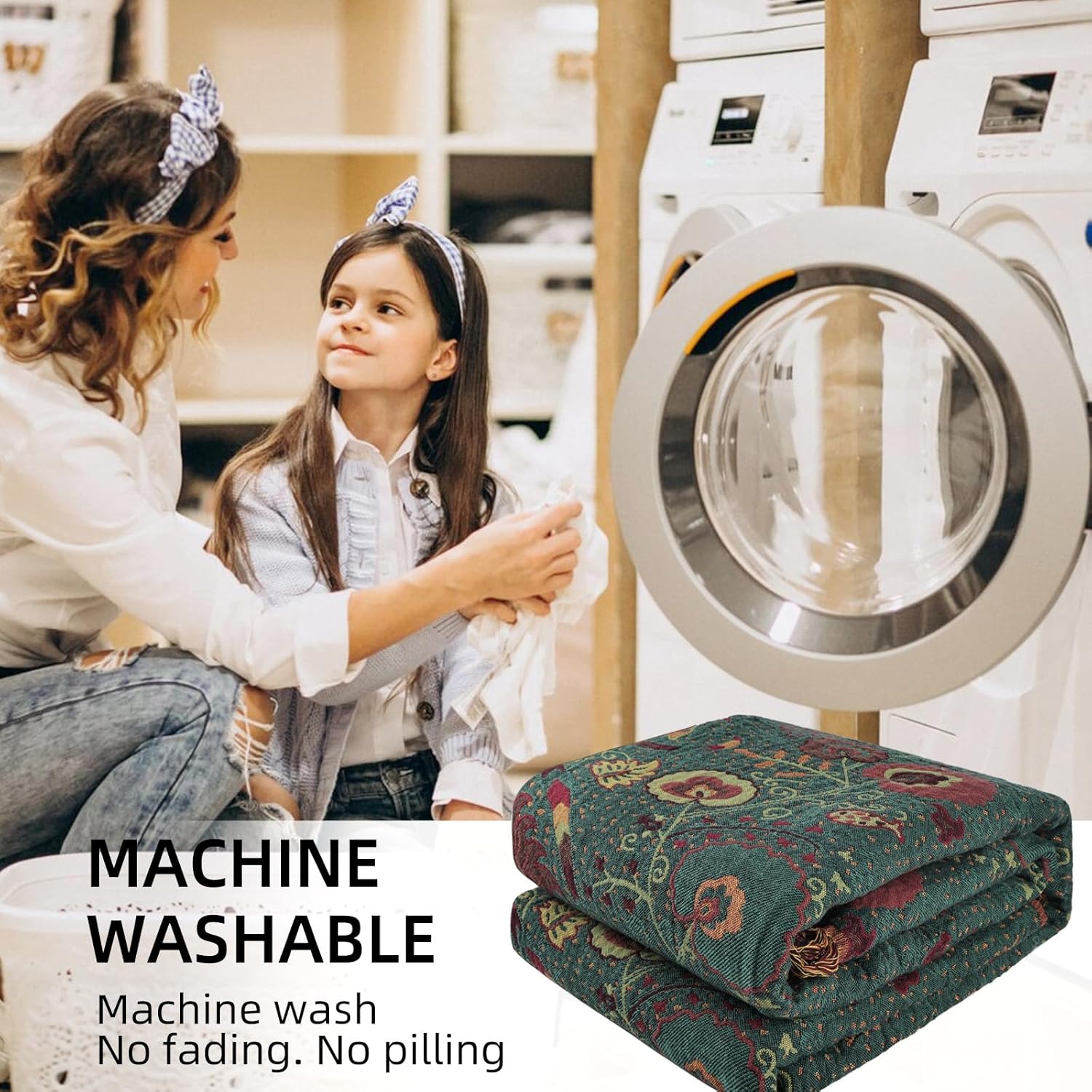 Boho Throw Blanket for Bed - 100% Pure Cotton Ultra Soft Rustic Quilt - Farmhouse Decor Bed Blankets, All Season Rustic Throw for Sofa Couch Chair(60''×80'', Floral)