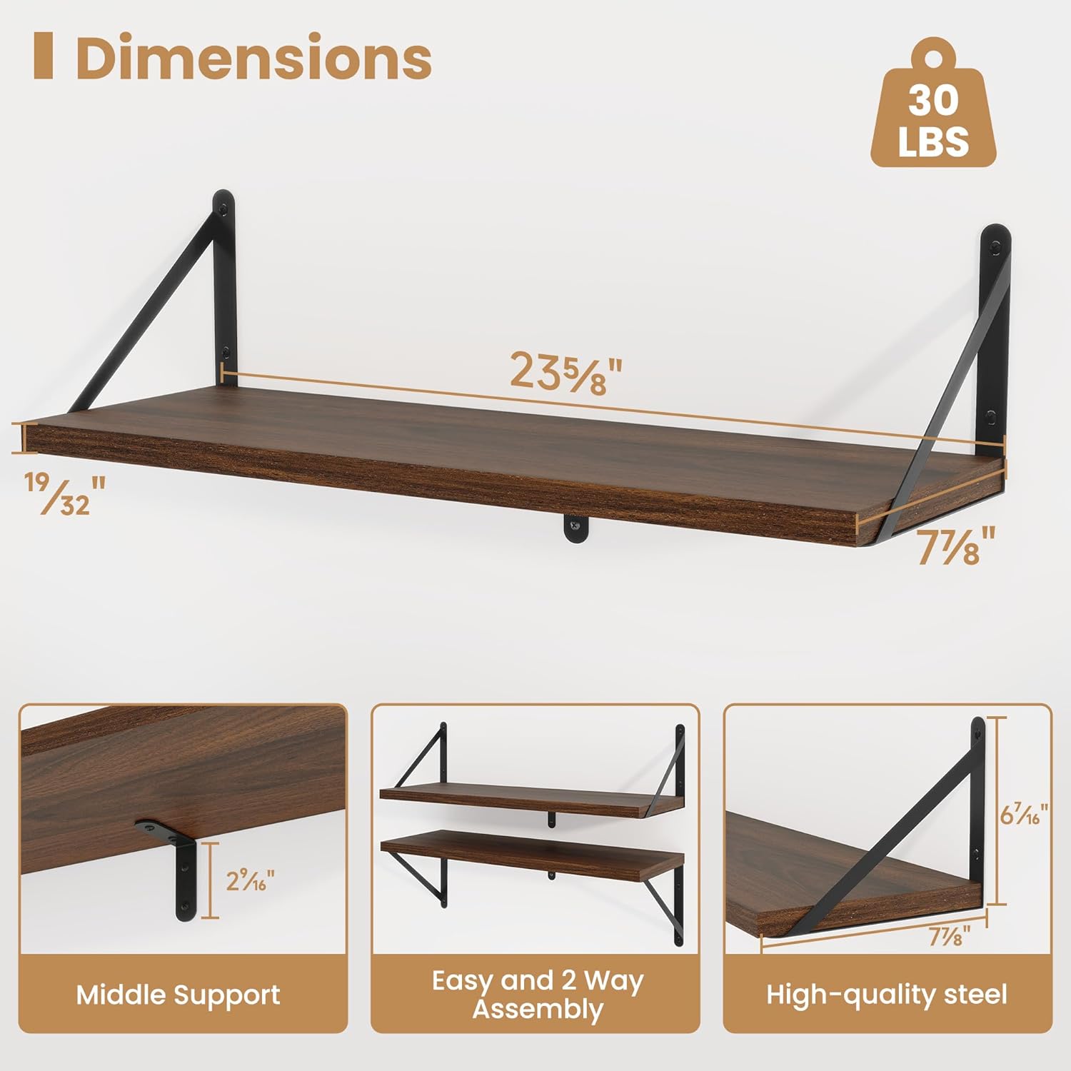 - 【Sturdy and Durable】The wall-mounted shelves are sturdy enough,with a load-bearing metal frame added in the middle,which will not deform and can withstand a weight of 30 pounds. It is very suitable for use as a wide bookshelf,TV stand,for home office,laundry room. Follow the instruction steps,including all necessary hardware,easy to assemble.
