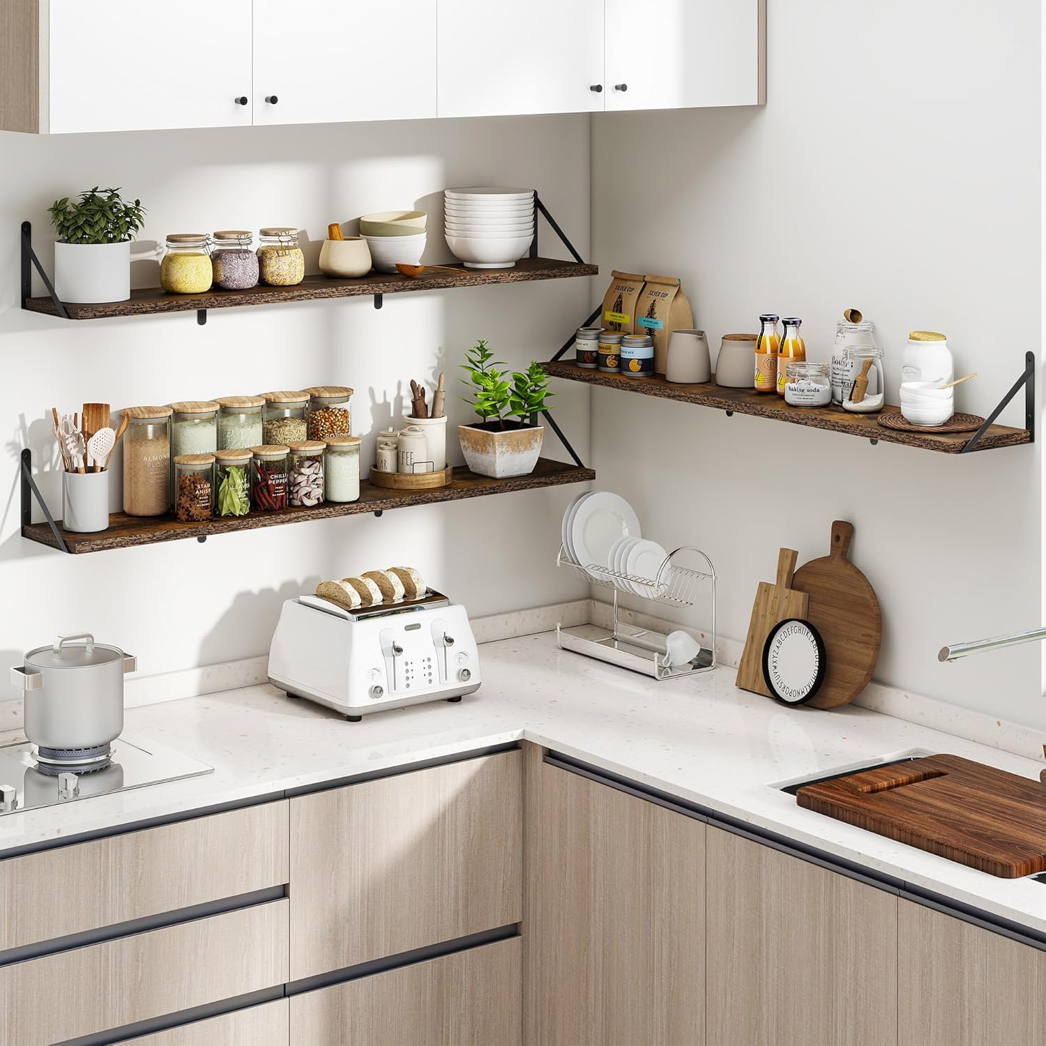 Heimlove 48 Inch Large Floating Bookshelves Set of 3,Rustic Brown Wood Wall Mounted Bookshelves,Heavy Duty Shelves for Living Room,Bedroom,Kitchen,Laundry Room Storage & Decor