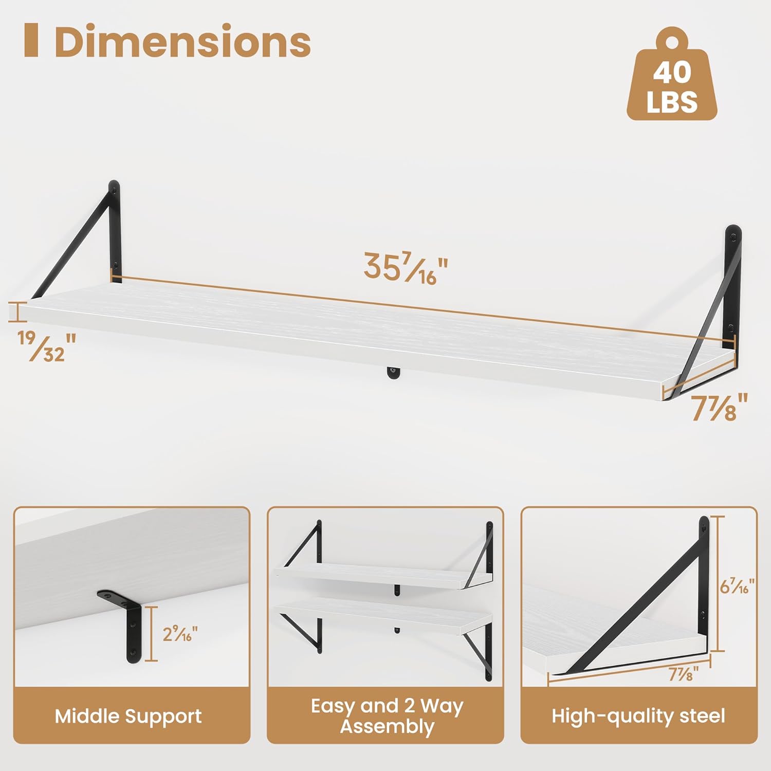 - 【Practical Wall Bookshelf】Our 35.4"W x 8"D floating shelves are your good helpers if you need extra storage space,or want to add green decorations-small indoor plants,photo frames,collection books. These floating bookshelves can free up floor and counter space,making bedrooms,living rooms and offices more tidy.