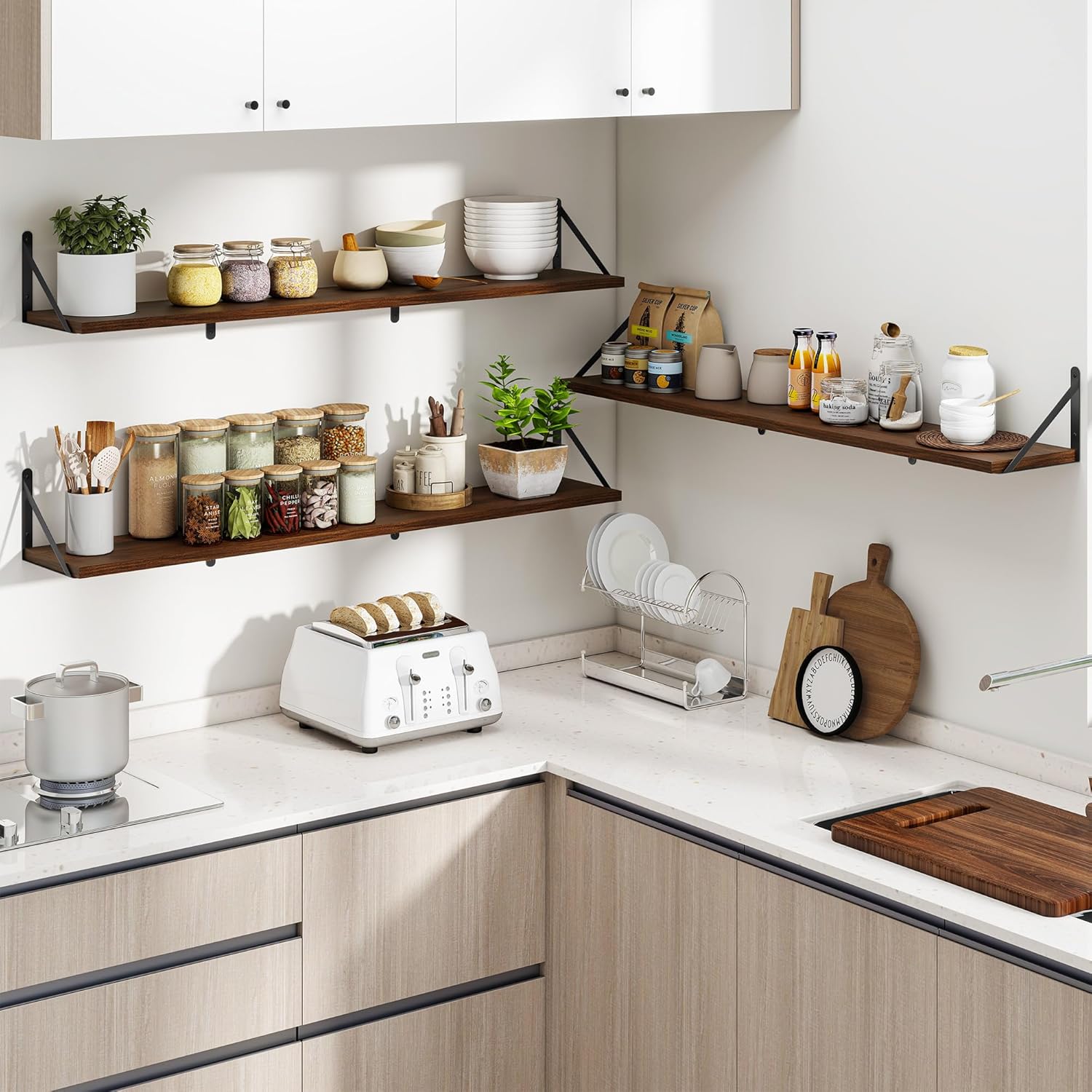Heimlove 48 Inch Large Floating Bookshelves Set of 3,Wall Mounted Bookshelves,Heavy Duty Wooden Shelves for Living Room,Bedroom,Kitchen,Laundry Room Storage & Decor-Walnut Color