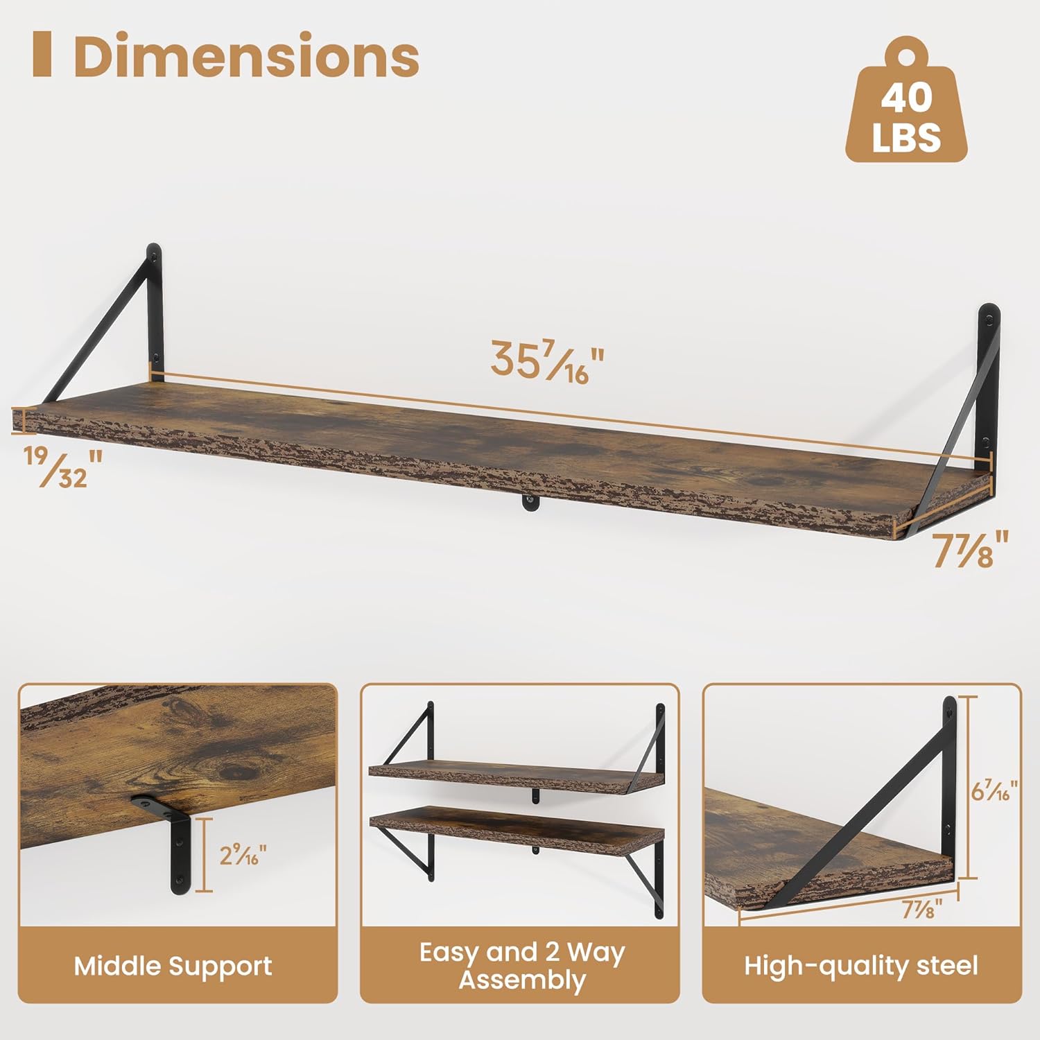 - 【Practical Wall Bookshelf】Our 35.4"W x 8"D floating shelves are your good helpers if you need extra storage space,or want to add green decorations-small indoor plants,photo frames,collection books. These floating bookshelves can free up floor and counter space,making bedrooms,living rooms and offices more tidy.