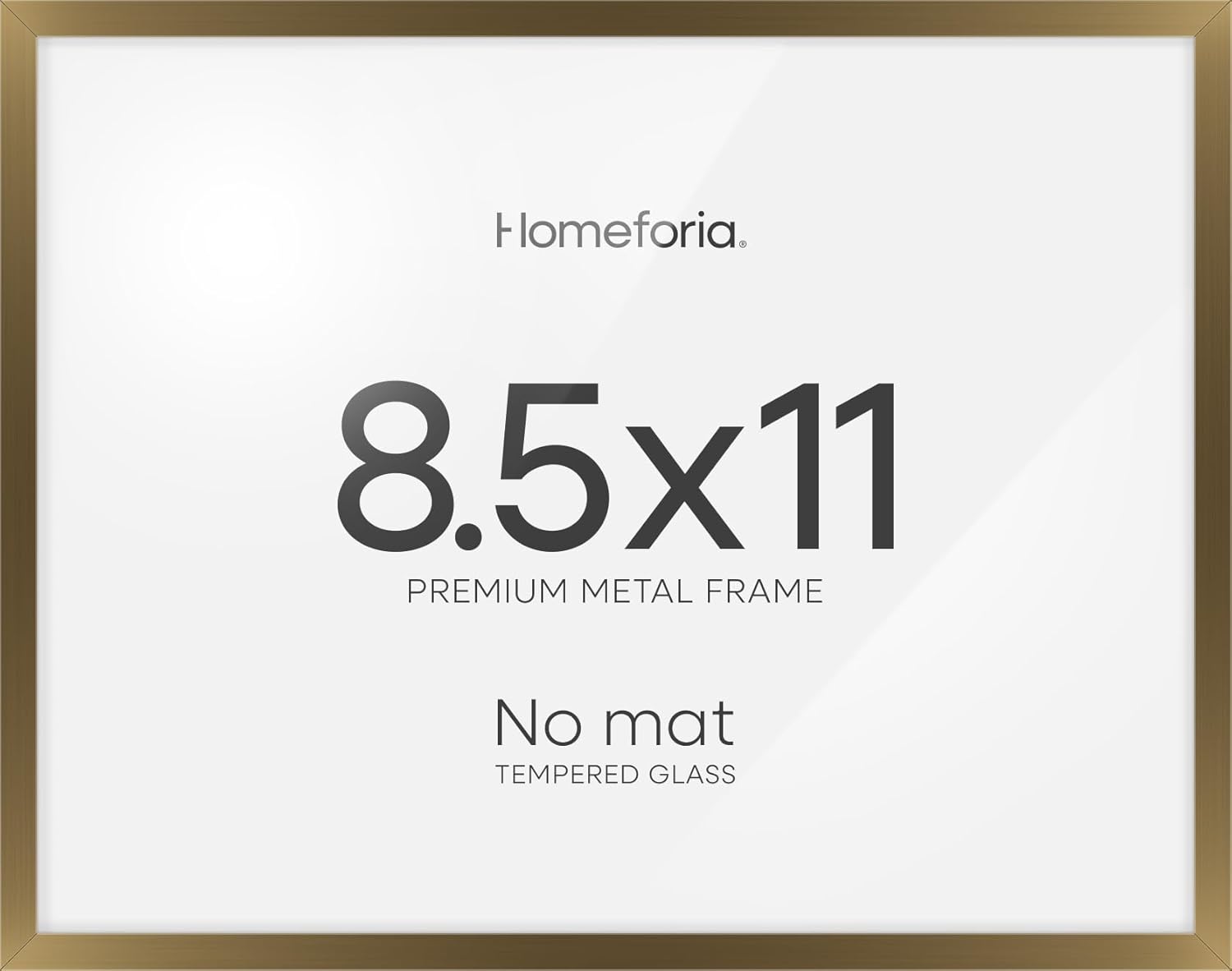 Homeforia 8.5x11 Diploma Frame Bronze, High End Metal 8.5 x 11 Certificate Frames, 11x8.5 Document Frame for Wall or Tabletop, 8.5by11 Letter Size Graduation Frames, Tempered Glass, Wall Kit, Set of 1