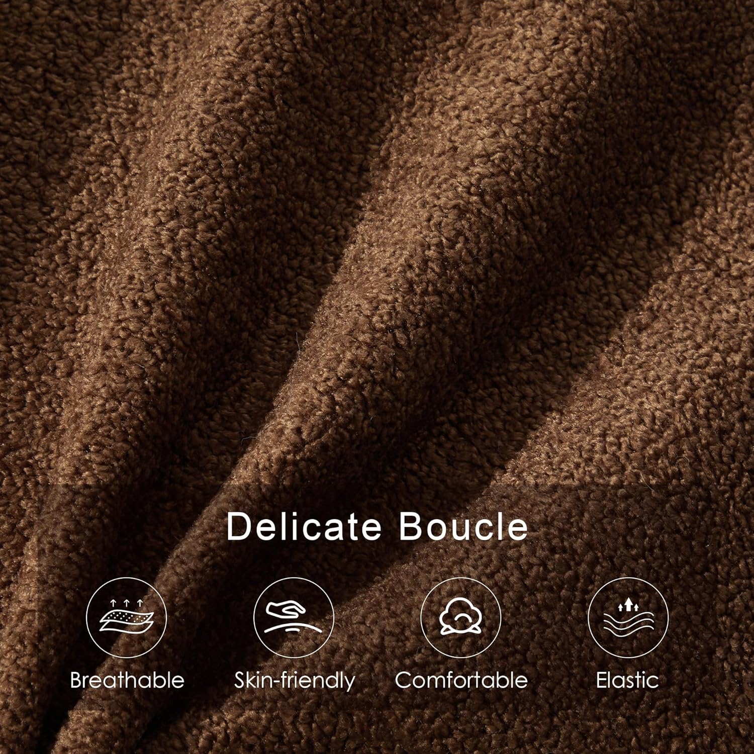 63" Bedroom Bench, Upholstered Entryway Bench, Modern End of Bed Ottoman with Solid Wood Legs and Adjustable Foot Pegs for Entryway, Dining Room and Living Room (Brown Boucle)