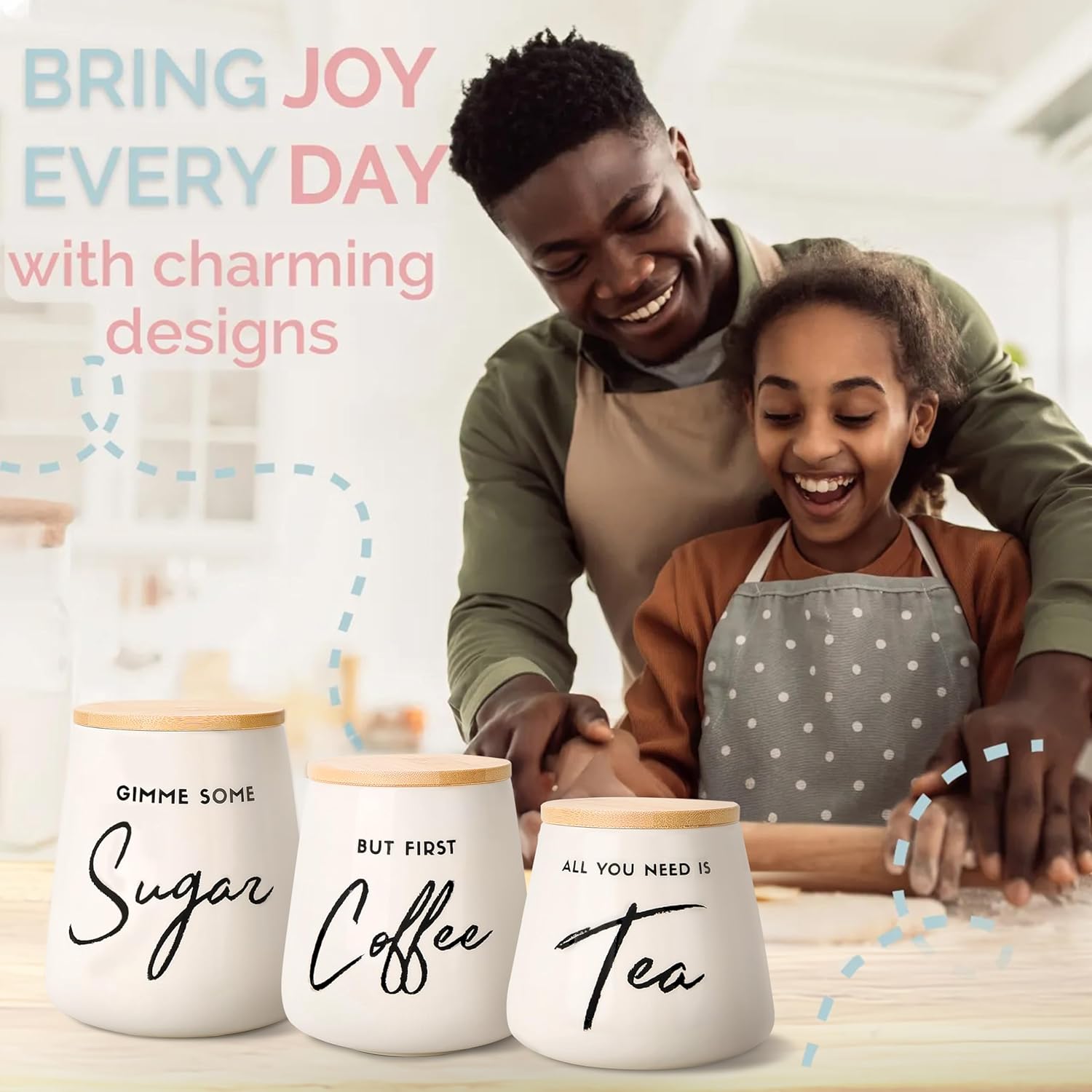 - Experience the Joy of an Organized Kitchen: Organizing your coffee tea & sugar in elegant airtight ceramic containers will enhance the style of your kitchen; Love your clutter-free coffee bar with these elegant, whimsical canisters