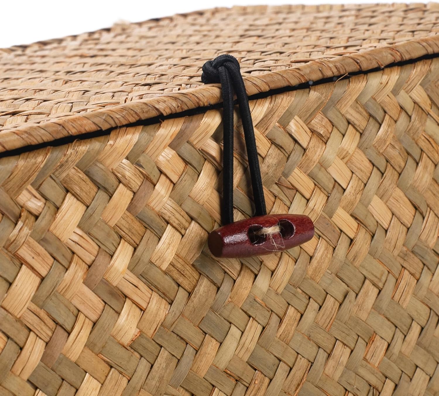 Wicker Basket with Lid, Seagrass Storage Basket, Woven Baskets for Storage, Decorative Storage Baskets for Shelf Organizing, Natural