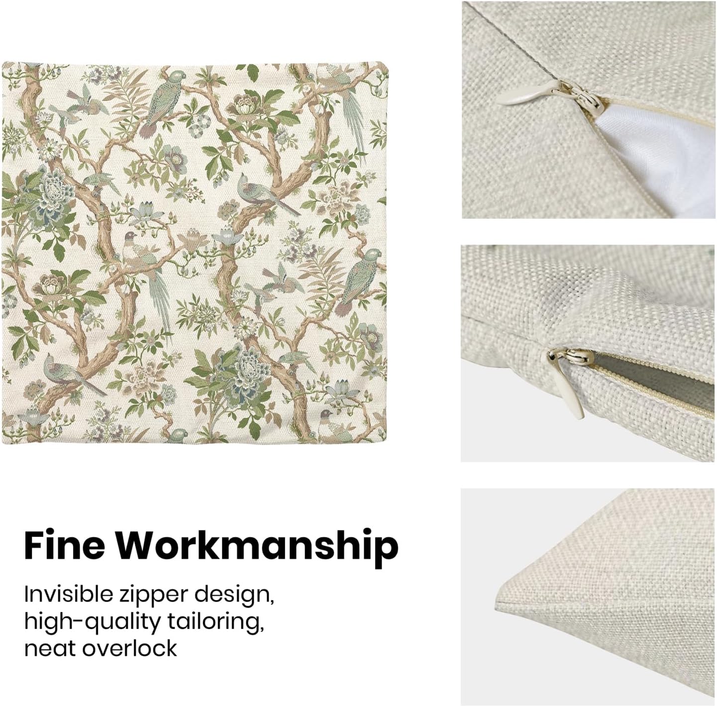 - 【Square Pillow Covers Size】 Chinoiserie flower birds pillow case set includes 2 pcs of farmhouse couch pillow covers (NO Pillow). Home decor farmhouse pillow covers measures 16x16 inch/ 40x40 cm. All the floral decor throw pillow covers have a hidden zipper. It is easy to insert or remove the pillow core to replace the spring pillowcase. Easy to clean and wash, sturdy and not easy to damage.
