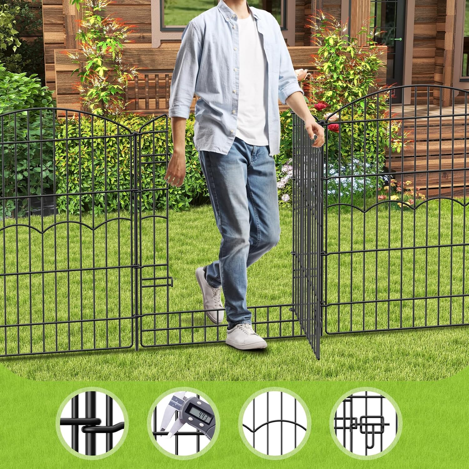 - Fence Size: Each garden fence panel measures 28.3"W x 38"H with a 1.45" gap, while the 7 metal stakes are 0.39" in diameter and 41.3" tall (8.6" into the soil) for secure anchoring in the ground. The removable fence includes 5 panels + 1 gate, connecting 6 panels, with a total length of 14.8 feet. The no-digging fence can be added or removed freely, giving you complete flexibility to customize your area.