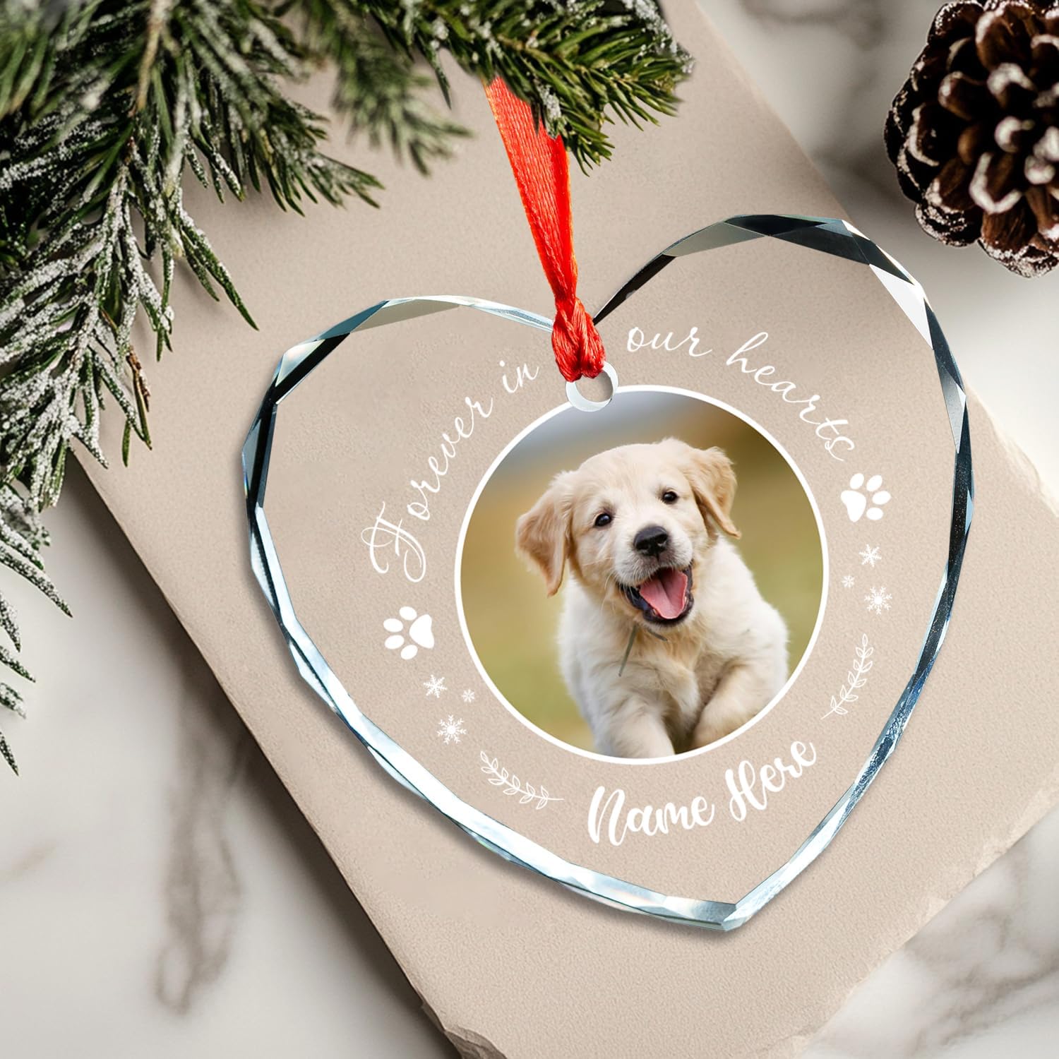 Personalized Pet Photo Ornaments, Custom Heart Glass Ornaments, Personalized Circle Glass Ornament, Custom Crystal Ornament Gifts for Dog Lovers, Cat Gifts for Cat Lover, Pet Love