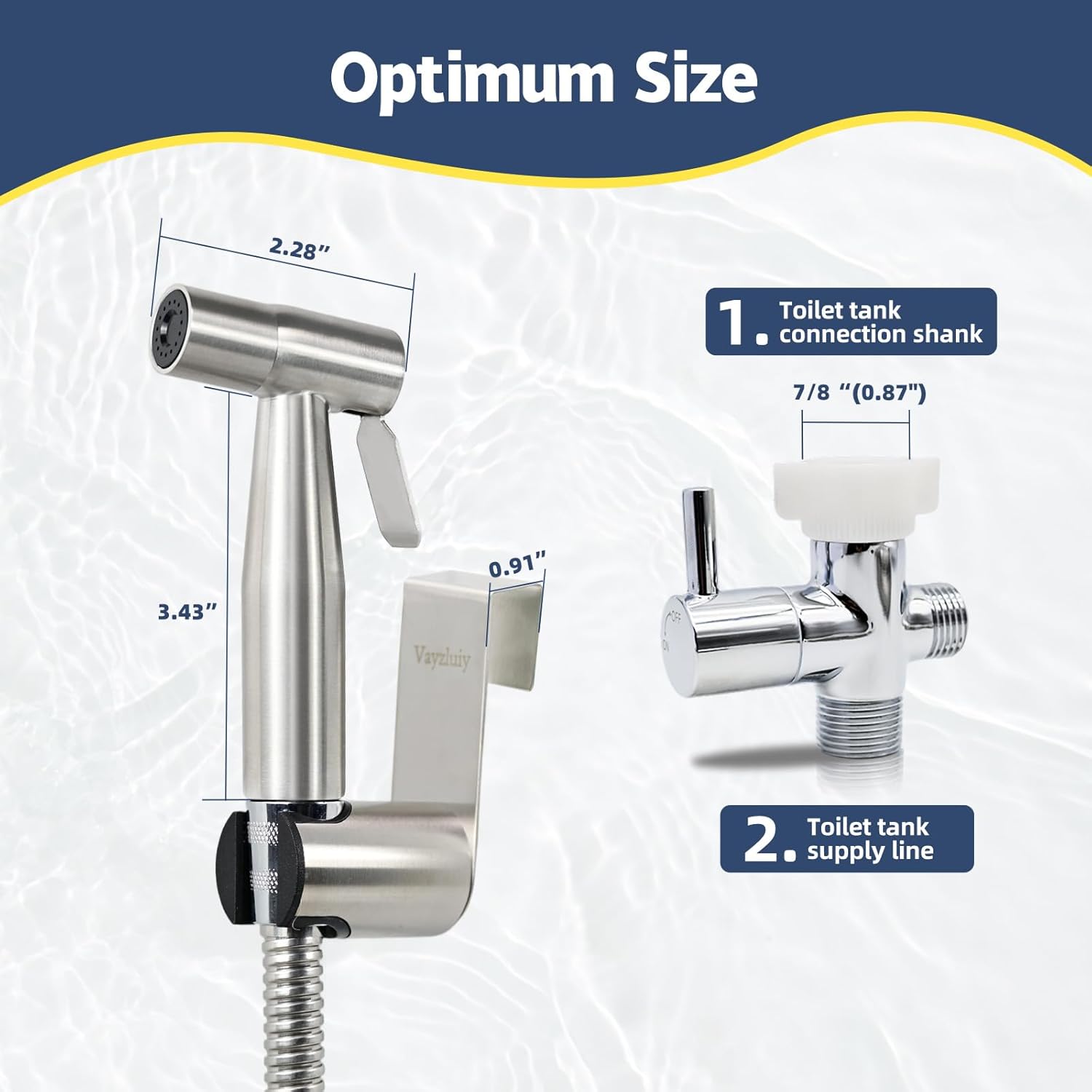 - Easy Installation - Installing the Vayzluiy Handheld Bidet Sprayer is a breeze. No special tools or professional plumbing services are required. Before purchasing, ensure your toilet tank and water supply line have a 7/8-inch size. The kit includes all necessary components and clear installation instructions. For any questions, feel free to reach out to us through Amazon.