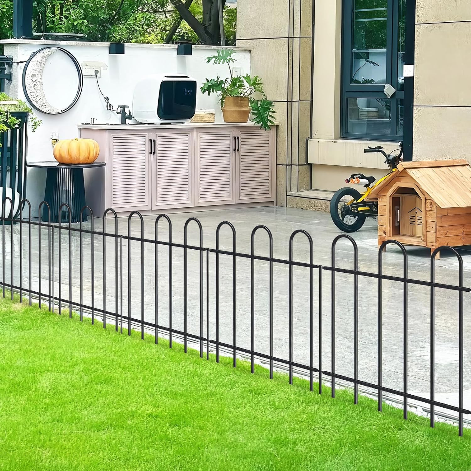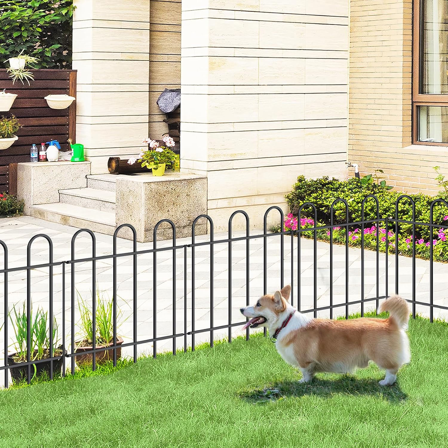 - CUSTOMIZABLE USE: It is so easy to adjust the panels to fit your unique garden needs and use multiple panels to create different shapes. A good choice for animal barrier fence in lawn, patio, front yard or backyard, this decorative garden fence can be used as a path edging, landscape border, vegetable border, flower bed fence, tree guard, fencing for yard, garden fence for dogs etc. It works well as an animal barrier for small size dogs.