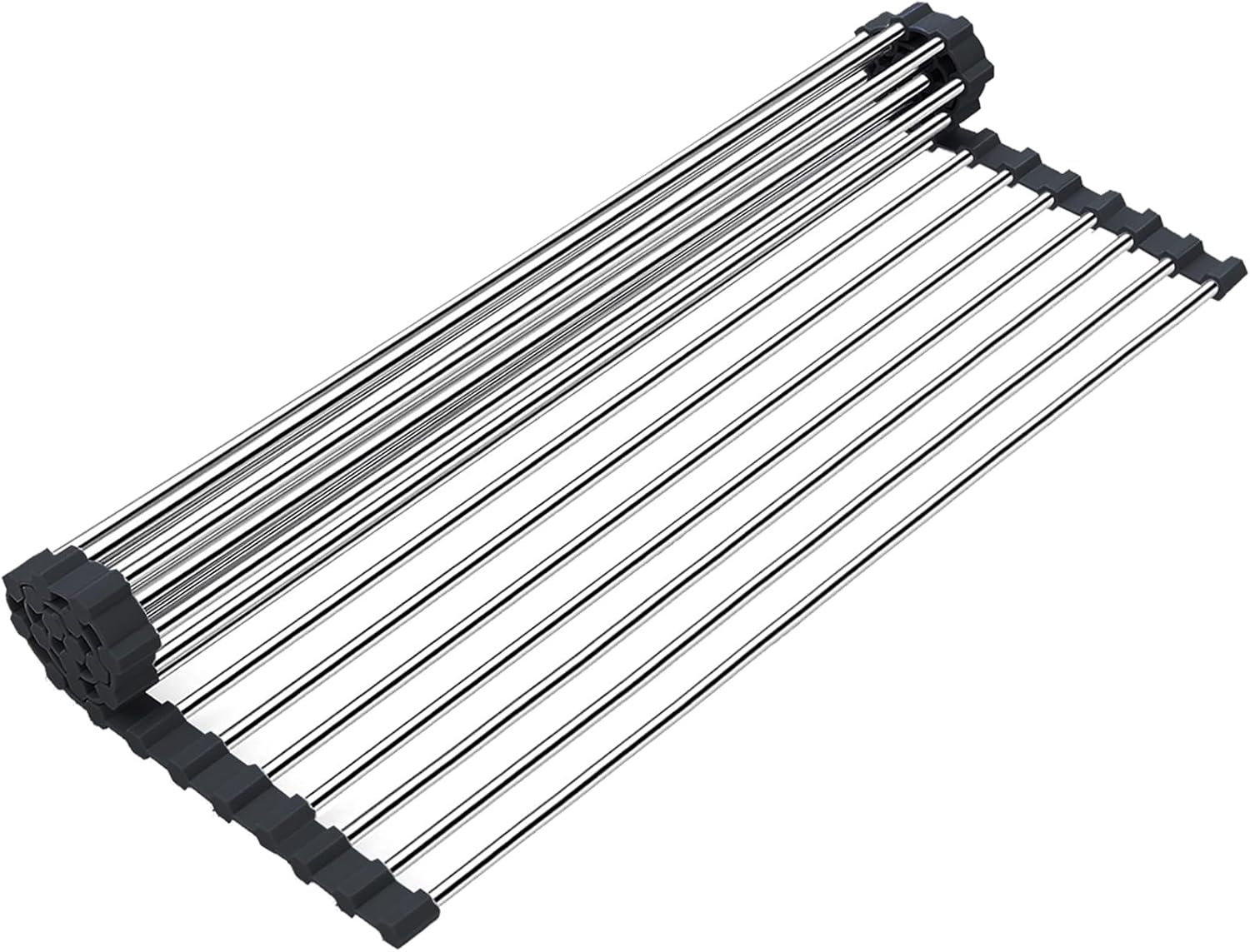 - Heat Resistance : Searik flat rolling kitchen dish drying rack can withstand temperatures up to 400°F (204°C), which can be perfectly used as a heat resistance dish drainer for kitchen counter. You can run hot water over stainless steel dish drying rack, and even place hot pots and pans or baking sheets on the rollup dish drying rack over the sink without causing any damage. Dishwasher Safe. An essential for kitchen organizers and storage
