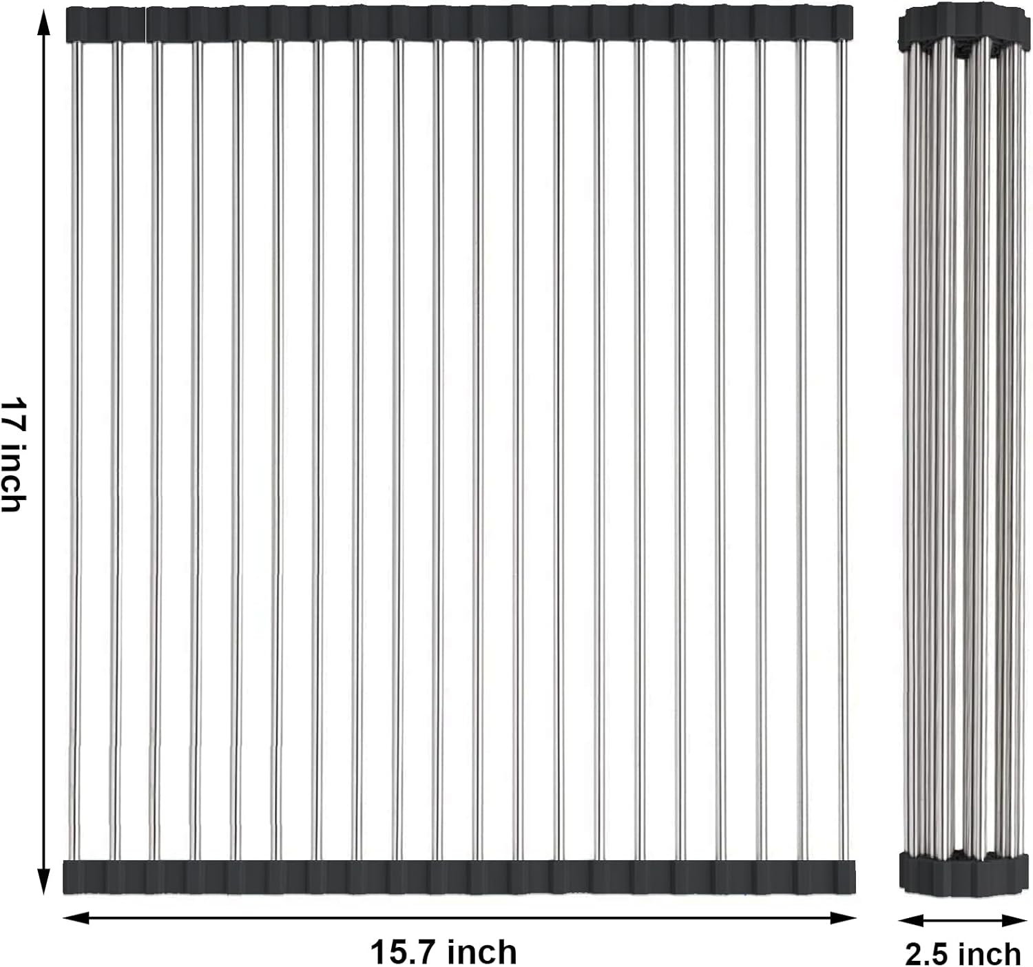 - Size : The size of the over sink dish drying rack is 17"x15.7". And you can also fold or cut the collapsible sink drying rack according to your sink size for better use. Please kindly measure your sink size firstly before purchasing this roll up dish drying rack over sink. A great helper for home accessories and kitchen necessities. With this small kitchen gadget, your kitchen and home will be much tidier and comfortable