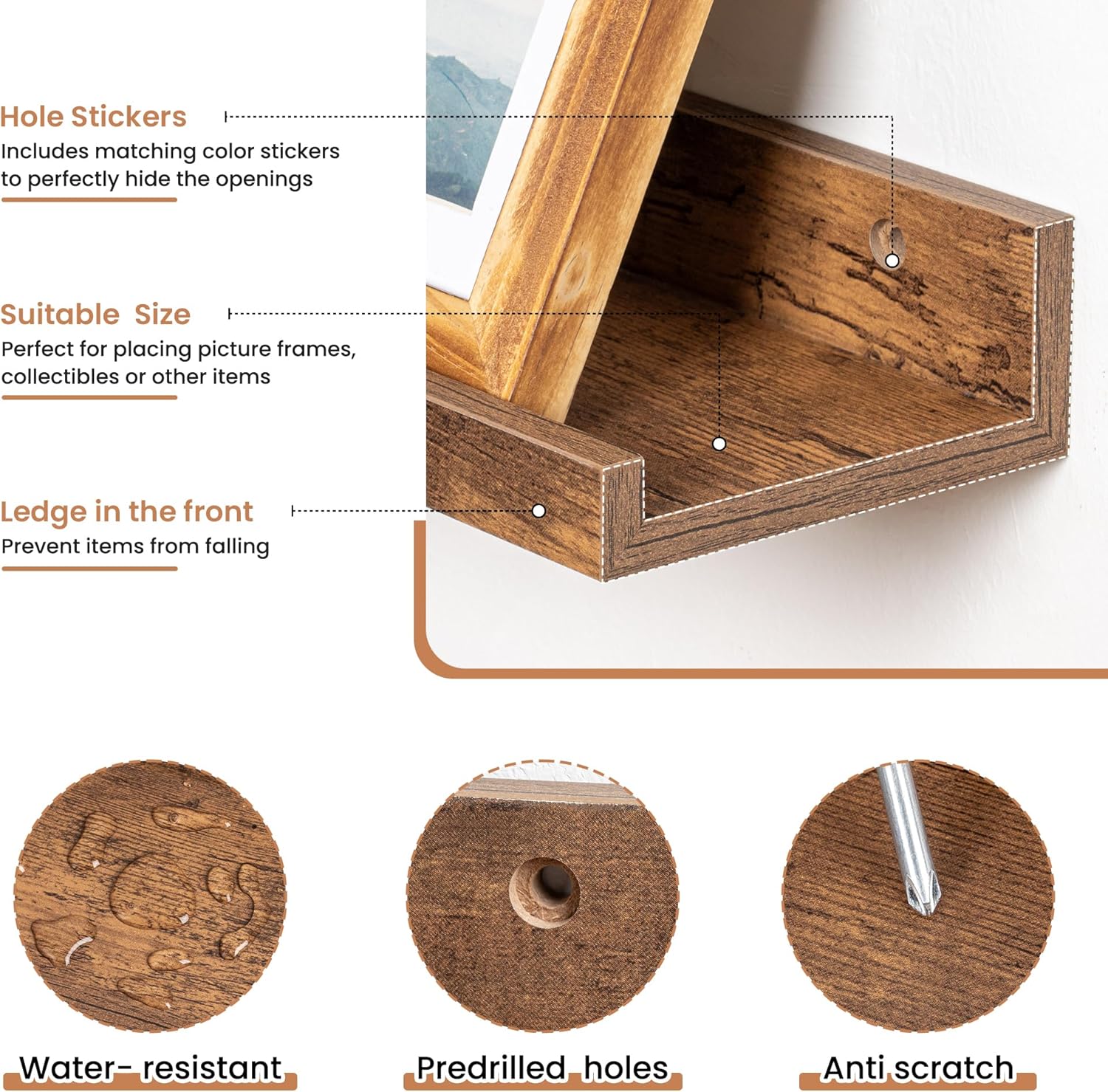 - Enhanced Stability Design: Featuring a secure lip at the front, these floating shelves prevent items from slipping or falling, confidently supporting up to 55 lbs, making these MDF wood shelves ideal for showcasing cherished items.