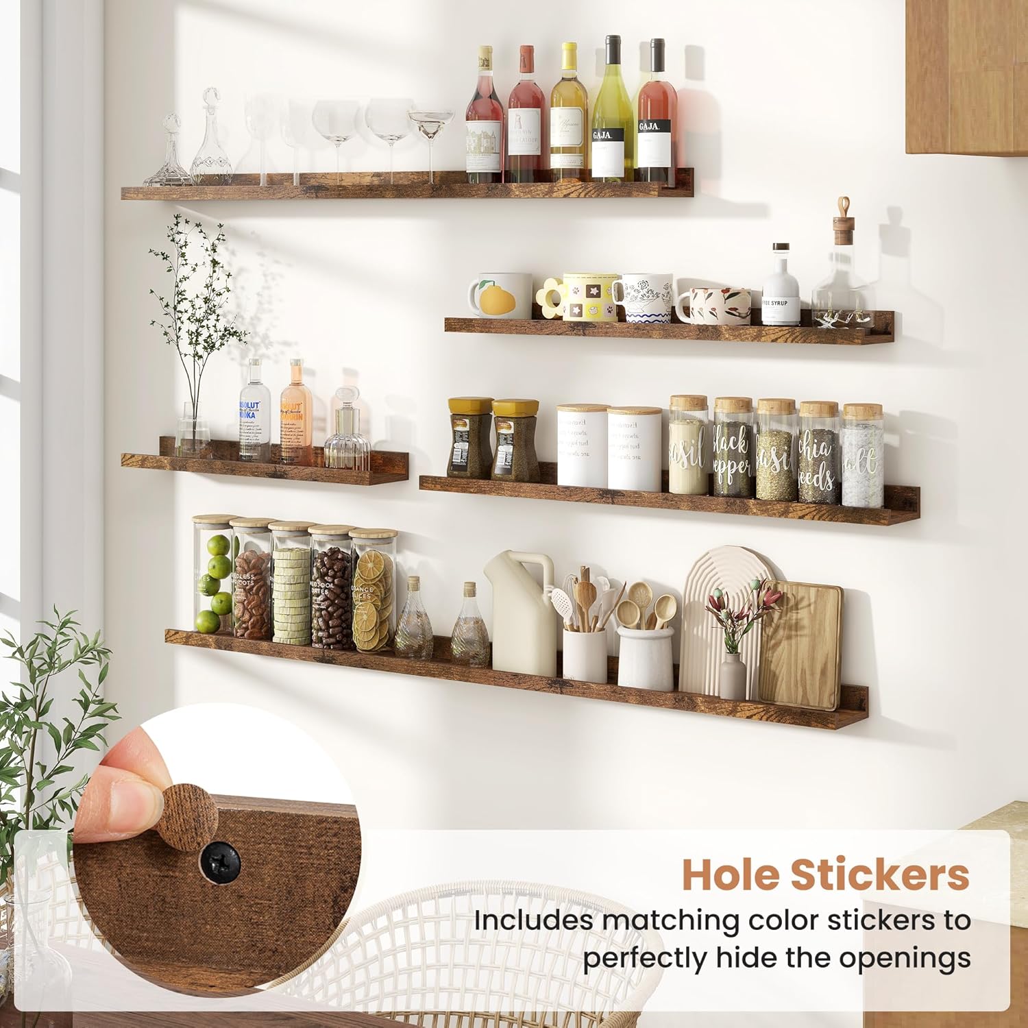 Fun Memories Picture Ledge Shelves Set of 2, 55 Inch Rustic Wall Mounted Floating Shelves with Lip for Home Storage and Décor in Bathroom, Kitchen, Nursery, Bedroom, Living Room, Brown