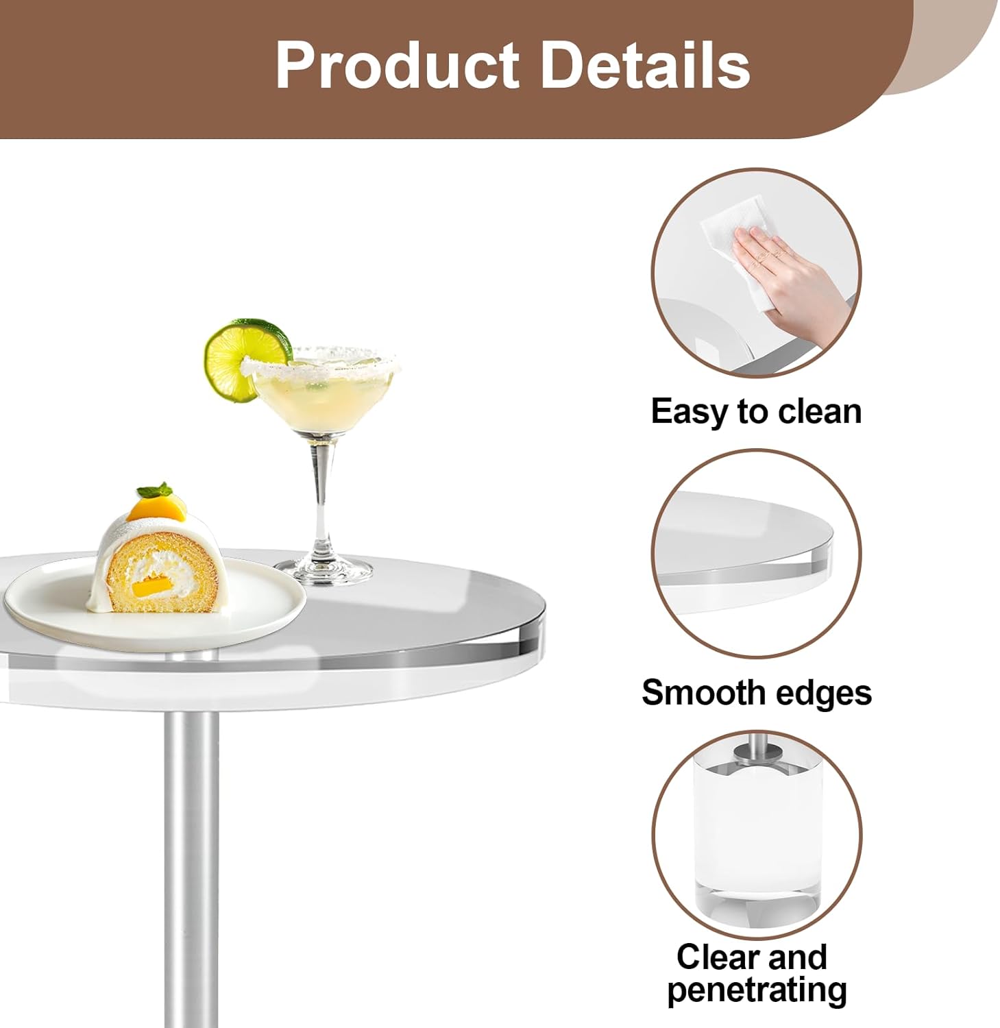 - 【Modern & Minimalist Design】This acrylic end table features a circular countertop connected to a cylindrical base via slender columns. Its sleek, minimalist aesthetic complements various home decor styles. Blending decorative appeal with functionality, it’s ideal for living spaces.