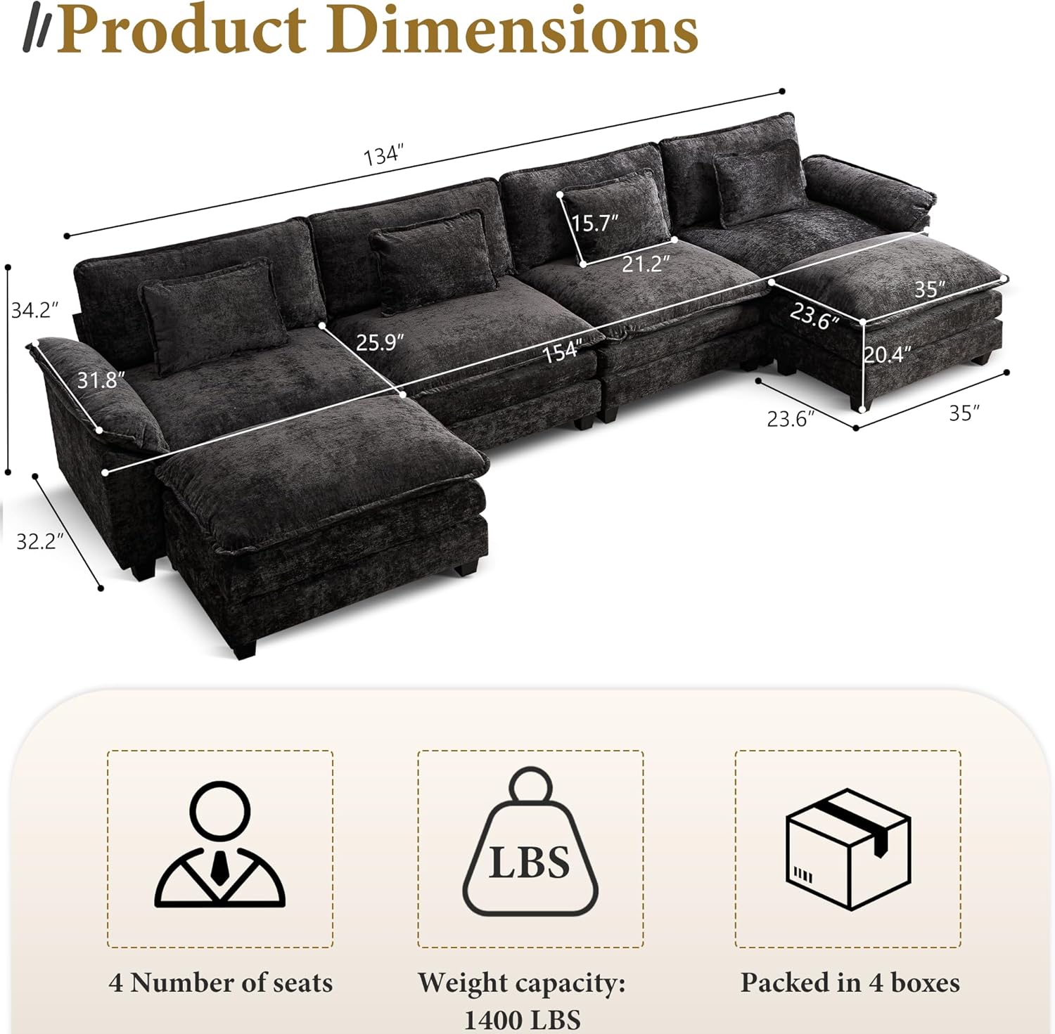 - Product Dimensions : 55.8"D x 154"W x 34.2"H
