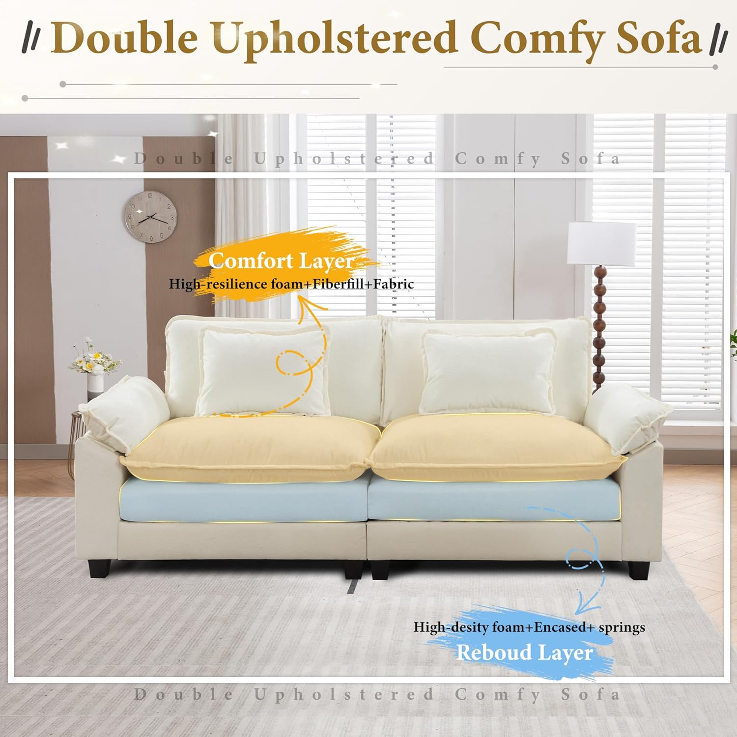 URRED Modular Sectional Sofa Comfy Cloud Couch, Modern Chenille Sofa Sleeper Deep Seat Couches with Ottoman/Pillows for Living Room (White, 82.6'')