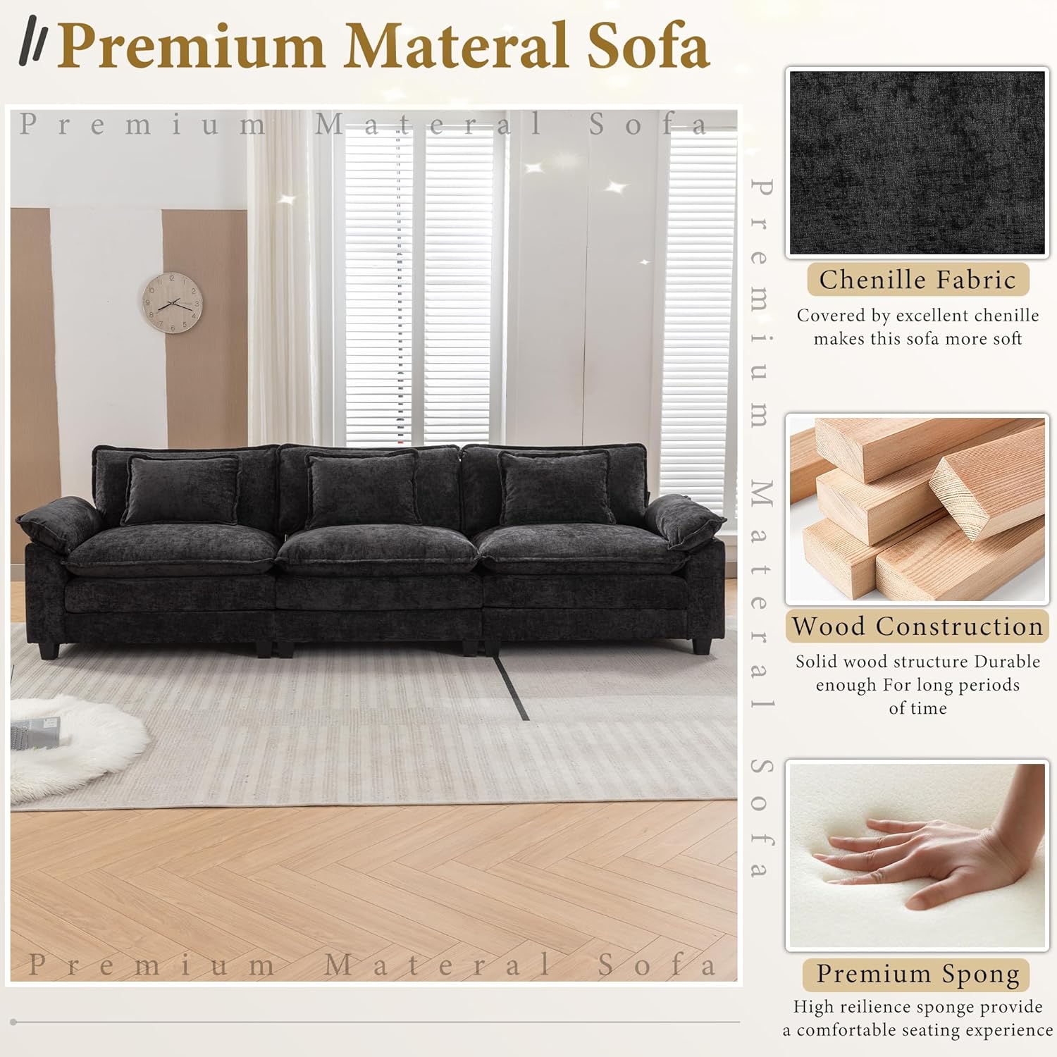URRED Modular Sectional Sofa Comfy Cloud Couch, Modern Chenille Sofa Sleeper Deep Seat Couches with Ottoman/Pillows for Living Room (Black, 117'')