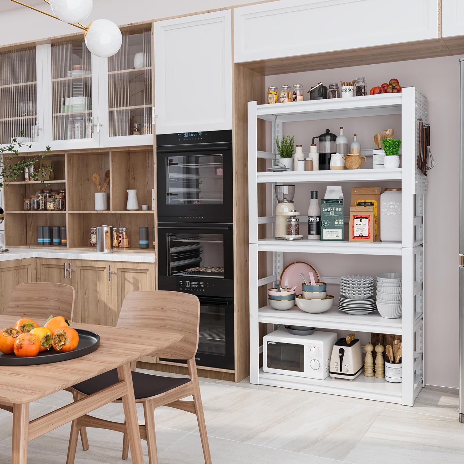 Book Shelf, 5 Tier Bookshelf, Industrial Bookcase Modern Bookshelves for Book/CD/Movie, Metal Shelving Unit for Living Room Home Office Kitchen, White