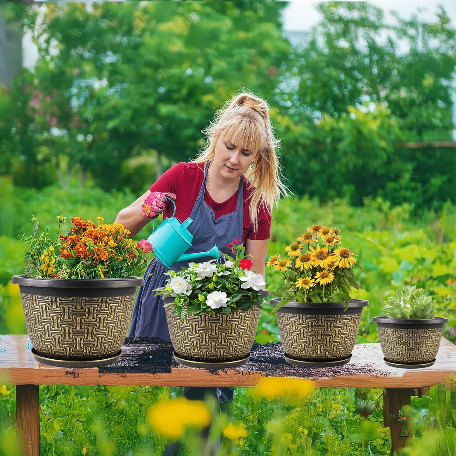 4 Pack 12 Inch Plant Pots,Large-Plant-Flower-Planters-Plastic, Flower Pots Outdoor Indoor with Drainage Holes & Trays, Retro Antique Imitation Decorative Garden Sets for Houseplants