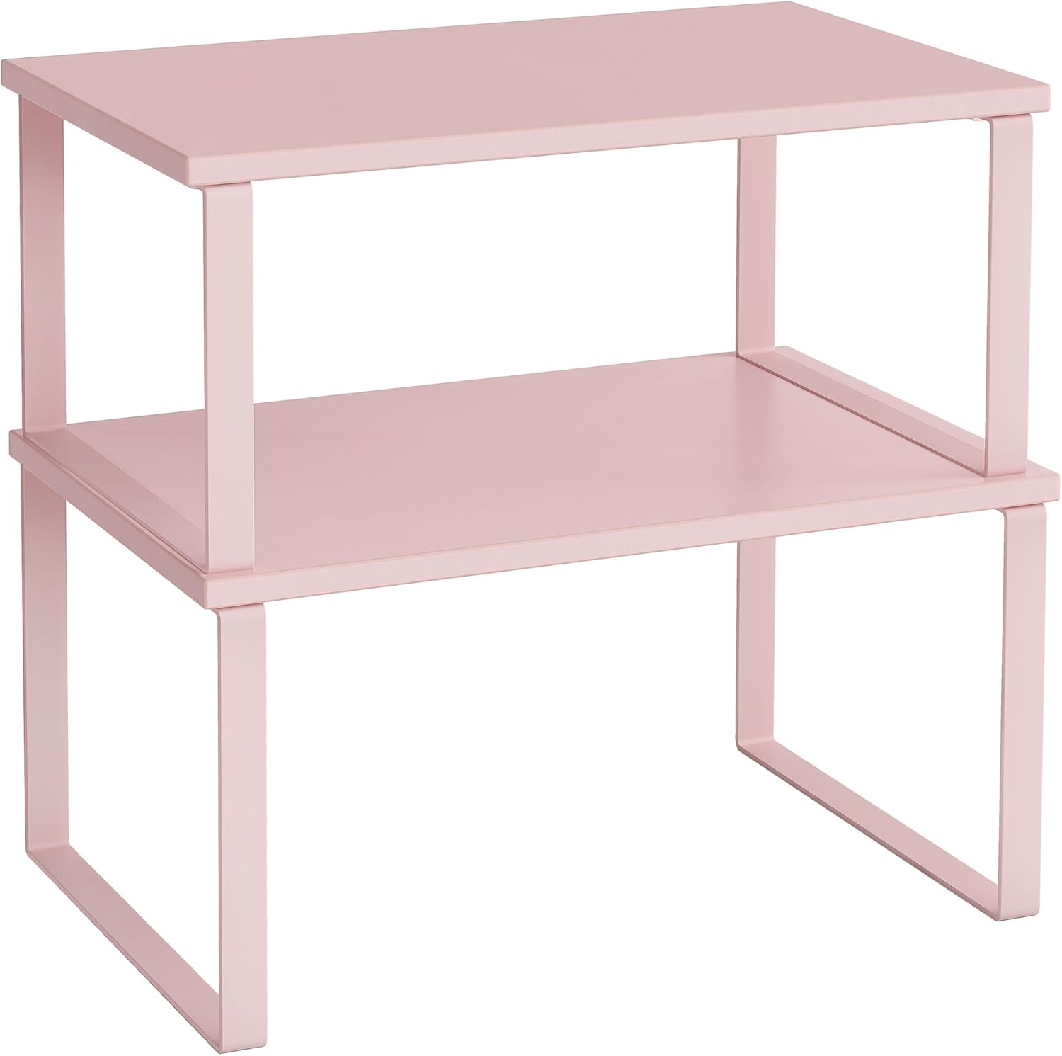 SONGMICS Cabinet Organizer Shelf, Set of 2 Kitchen Counter Shelves, Kitchen Storage, Spice Rack, Stackable, Expandable, Metal and Engineered Wood, Jelly Pink UKCS020S01