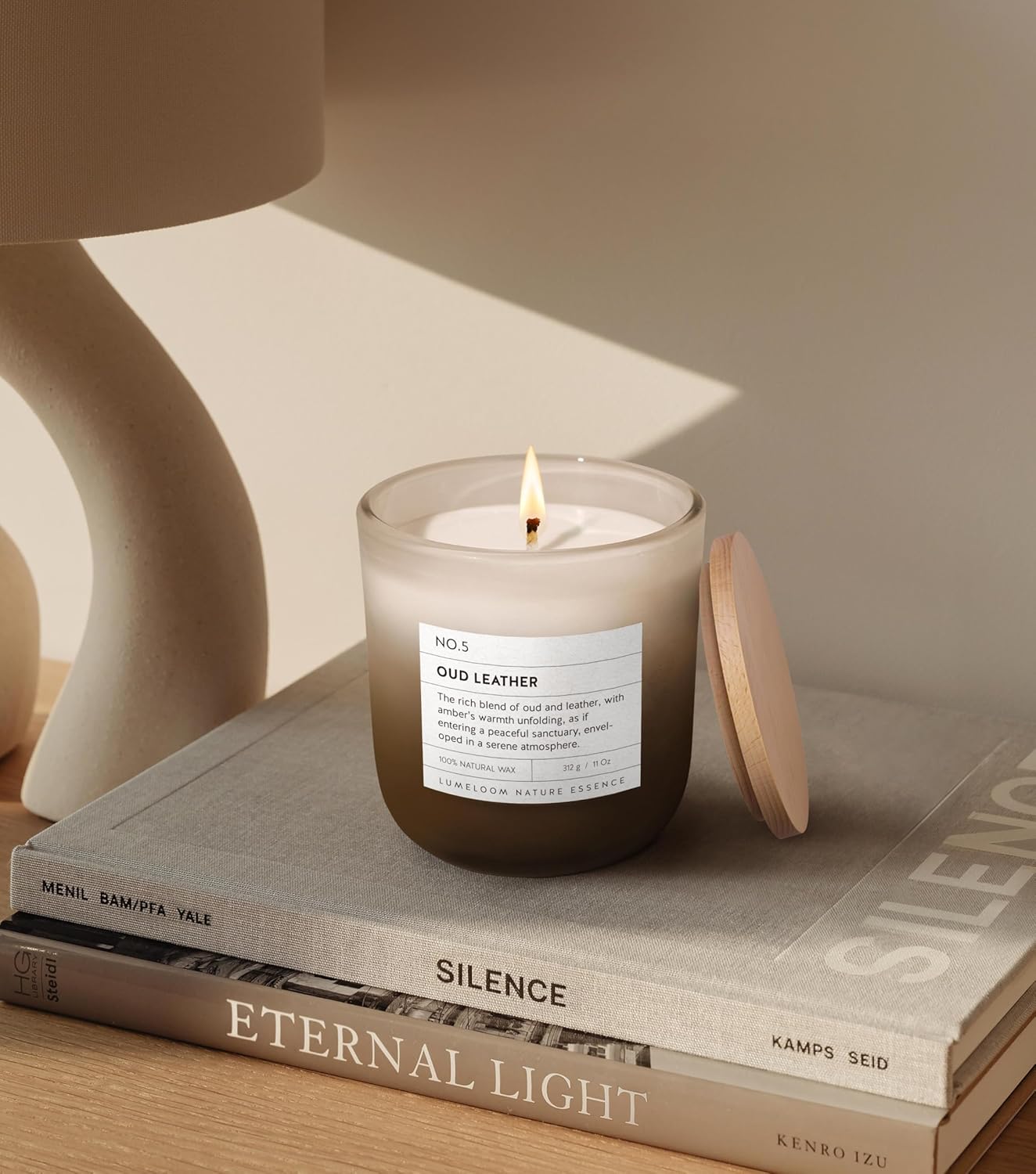 Oud & Leather Scented Candle, 11oz Aromatherapy Soy Wax Candles for Home Scented, Long Lasting, Oud Leather Scent for Home, Gifts for Men, Women, Friends, Teacher, Relaxation & Stress Relief